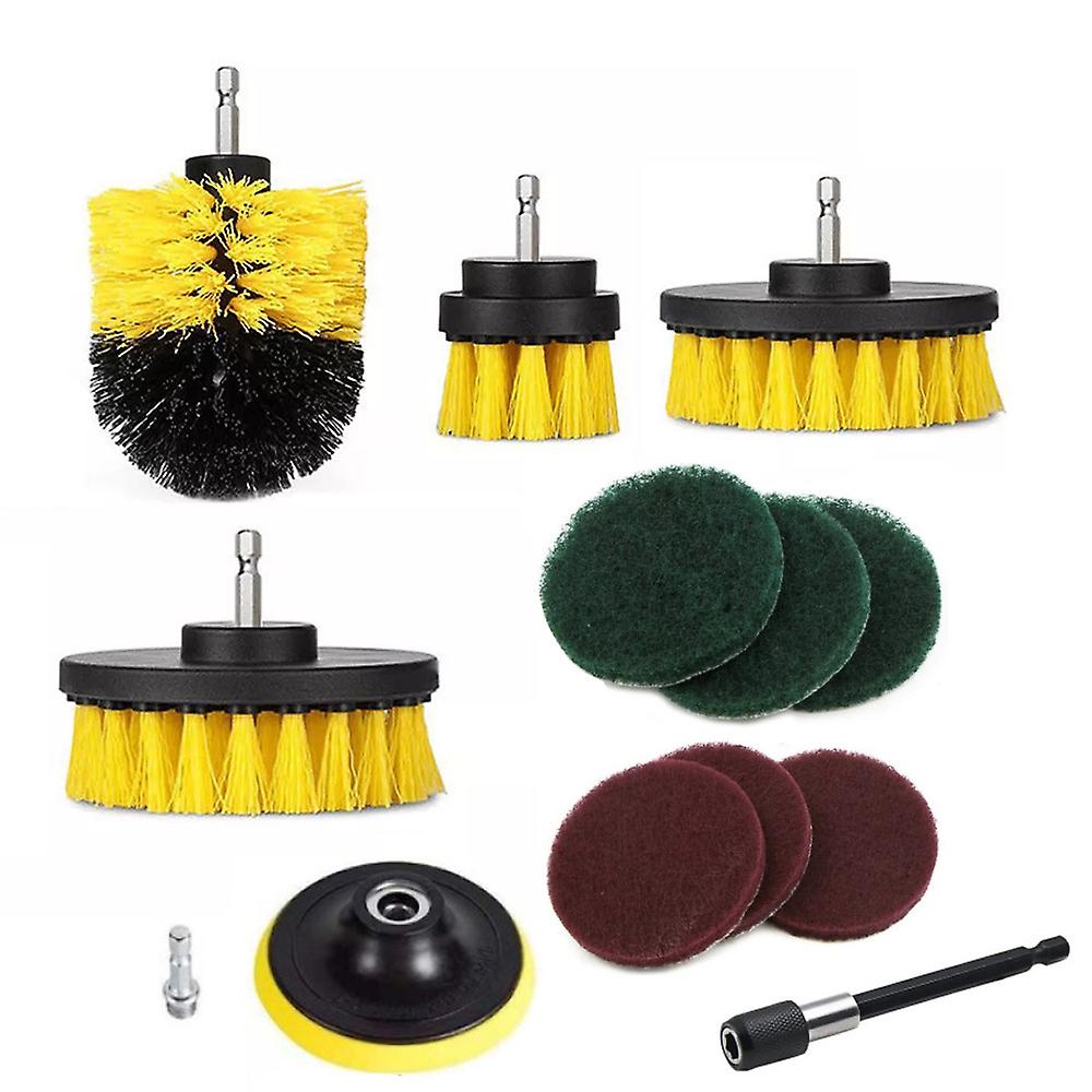 This professional set consists of nylon drill brushes of different sizes and hardness, cleaning sponges and wool mats and a switch head, perfect for cleaning bathrooms, kitchens, marble homes, home decor, glass, cars, showers, toilets, sinks, swimming pools, carpets, tiles, etc. At the same time, the scouring pads play a big role on cleaning kitchen, oven, cast iron skillet, stove, counter top, frying pan, pots and pans. The sponges and wool pads will be of great use to all kinds of coat paints' waxing, glass polishing and sealing glaze to clean and improve their lightness, last but not least is for polishing your car.