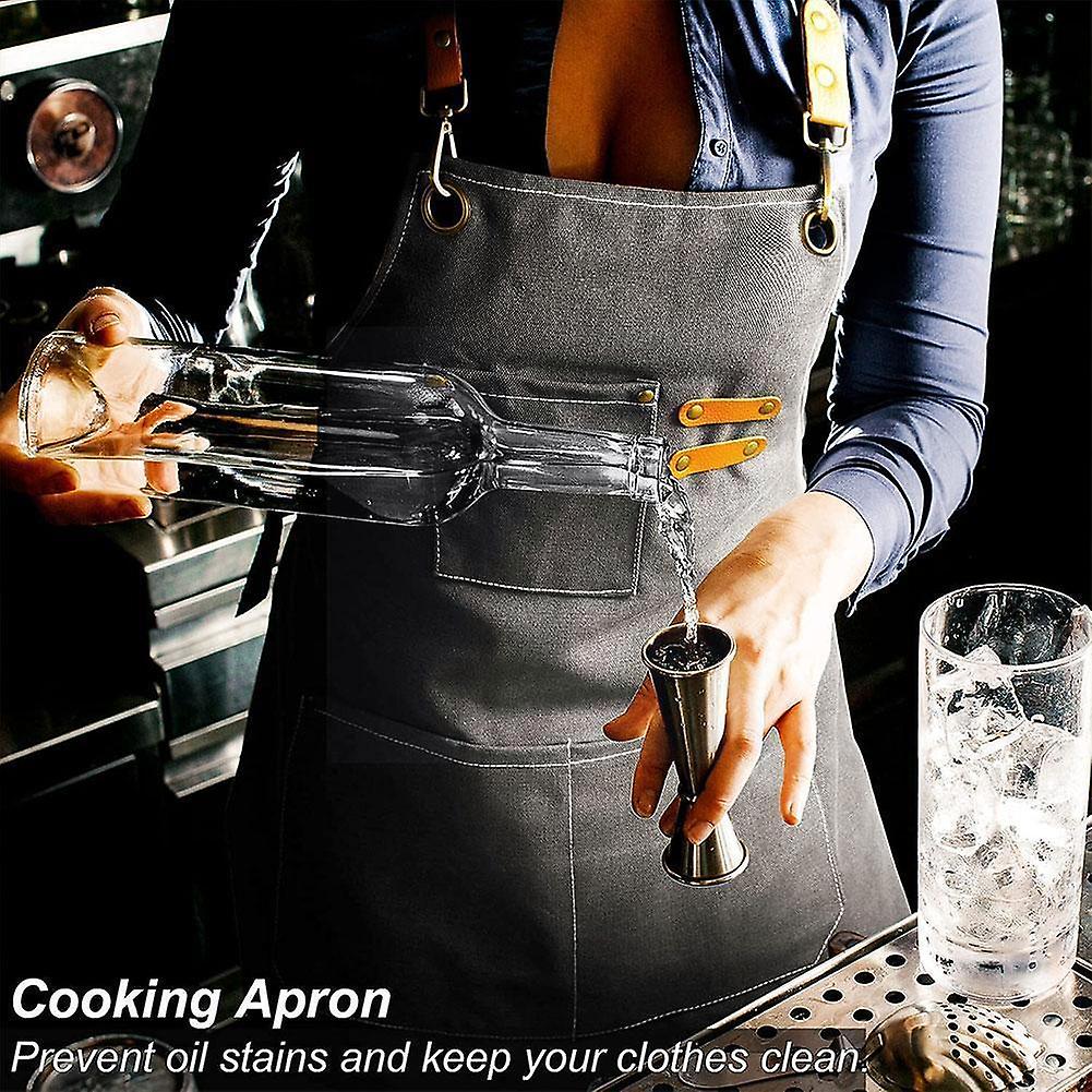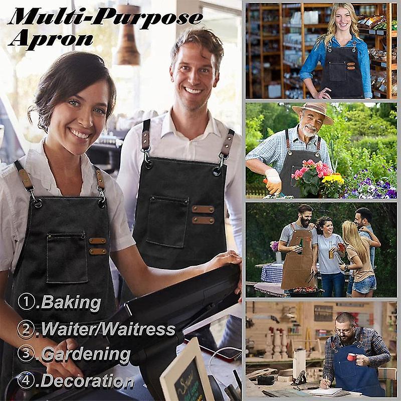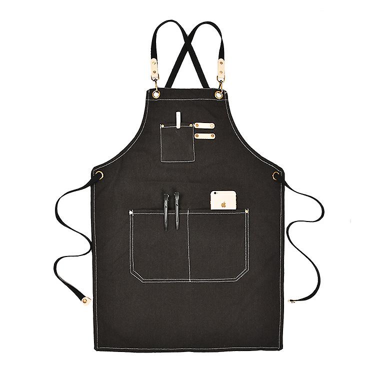 Canvas Work Apron With Adjustable Strap Multi Pockets For Barista Barber Beauty Salon