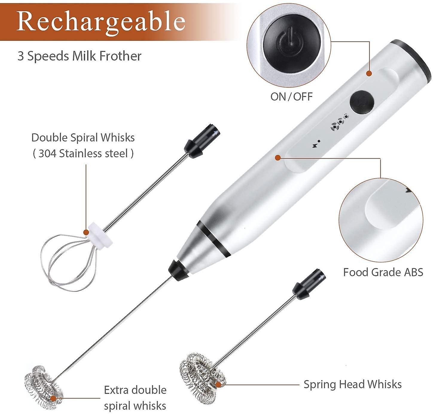 Electric Milk Frother Handheld Foam Maker Usb Egg Beater Rechargeable Drink Mixer With 3 Speeds