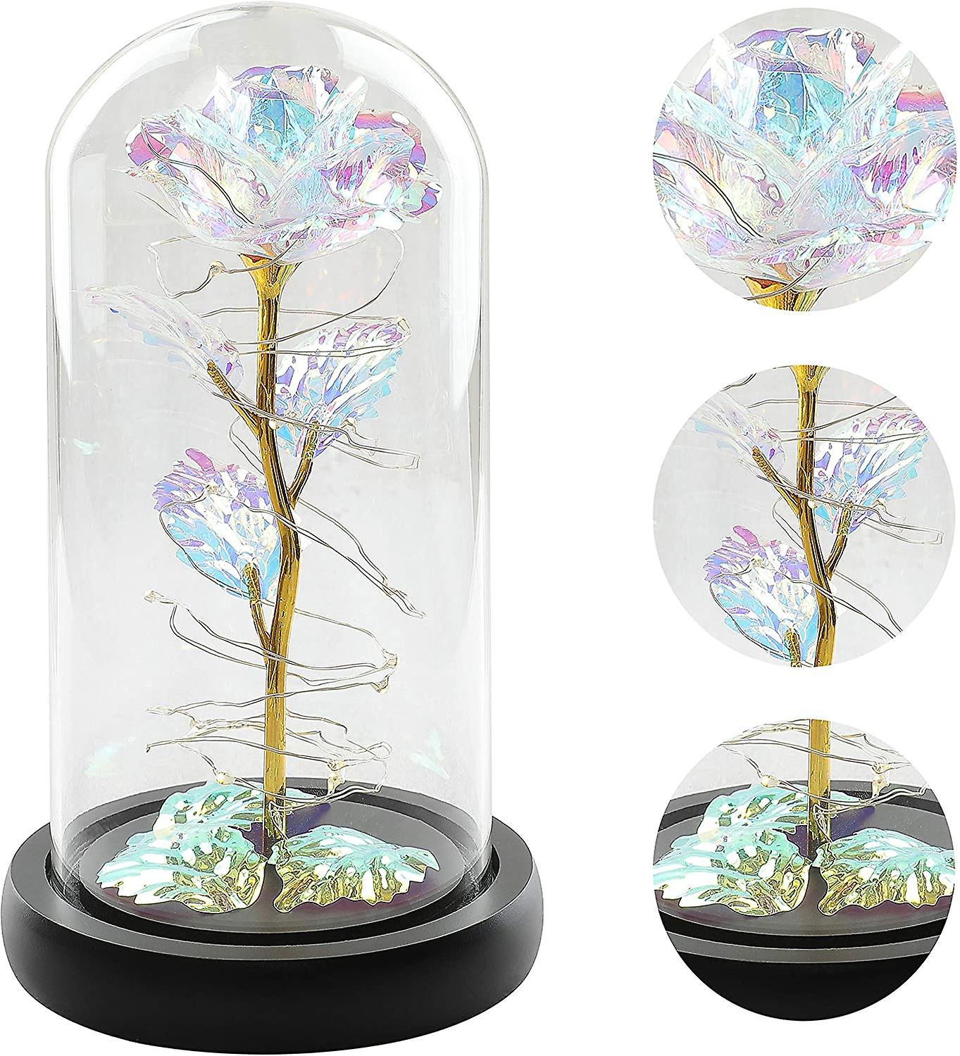 Mother's Day Birthday Mom Gifts Artificial Flower Rose Led Light In Glass Dome
