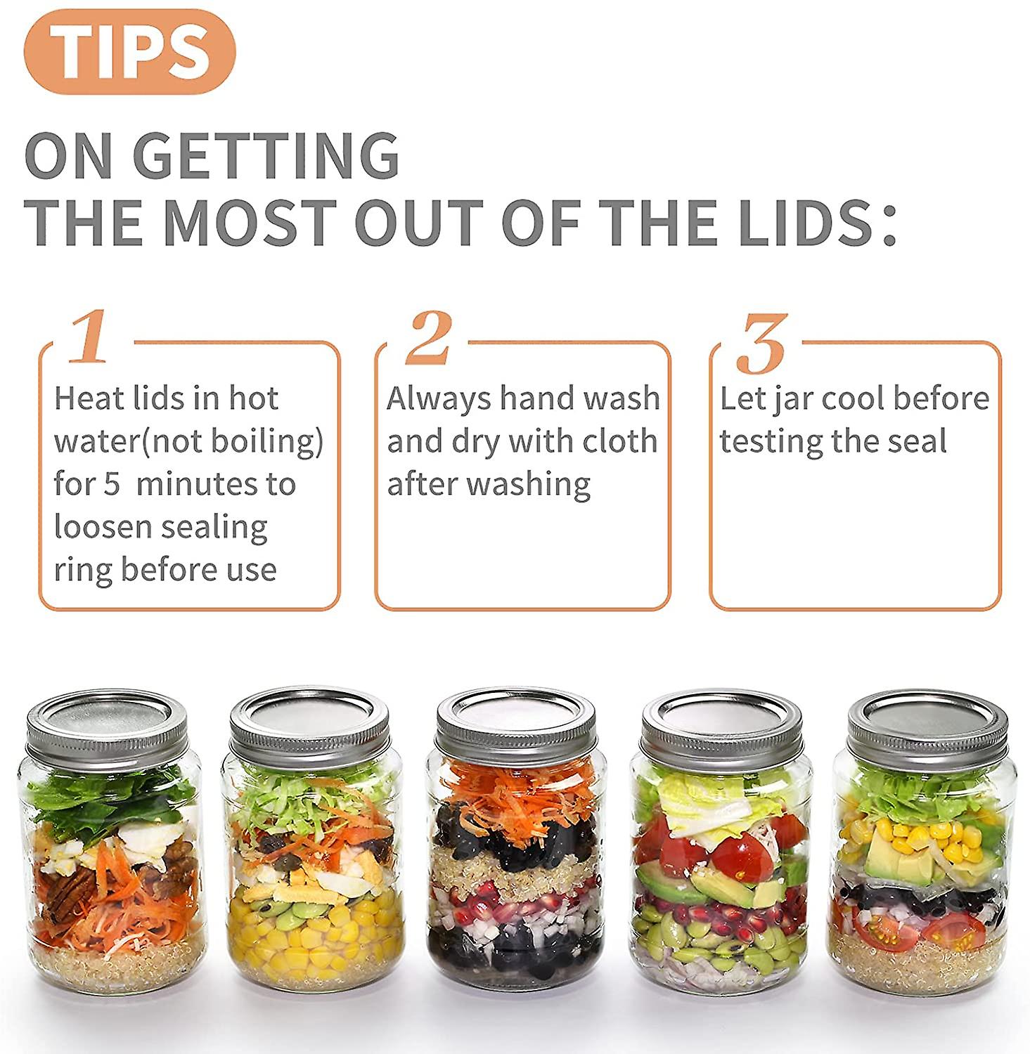 MUTIPLE USE: Suitable for sealing the canning mason jars that stored spices, sweets, biscuits, fruits, jams, soft drinks, tea or coffee, nails, screws and other small objects. NOTE: please make sure the size before purchase.