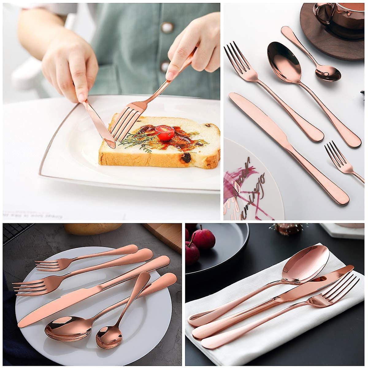 20-piece black flatware set include 4 dinner knives, 4 dinner forks, 4 dinner spoons, 4 salad/dessert forks, 4 dessert/tea spoons. Enough for daily family use.