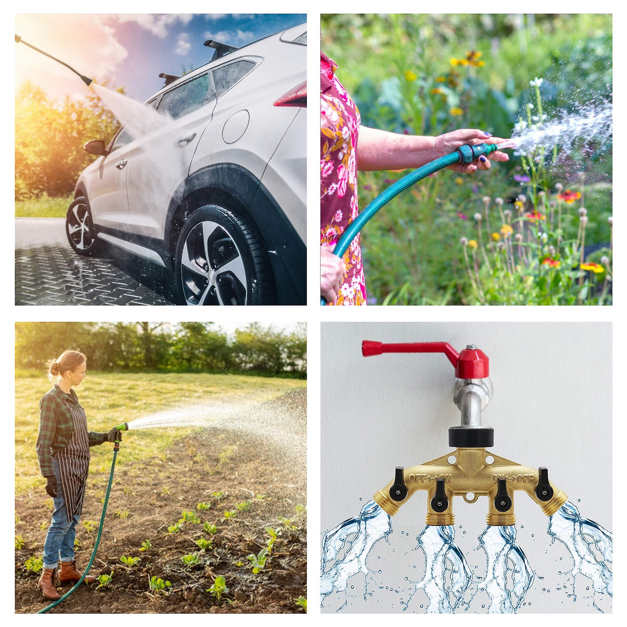 Adjustable water flows control: 4-port garden hose connector is equipped with high-quality ball valve. Each channel is equipped with a switch, and the water flows can be easily controlled by simply adjusting the handle.