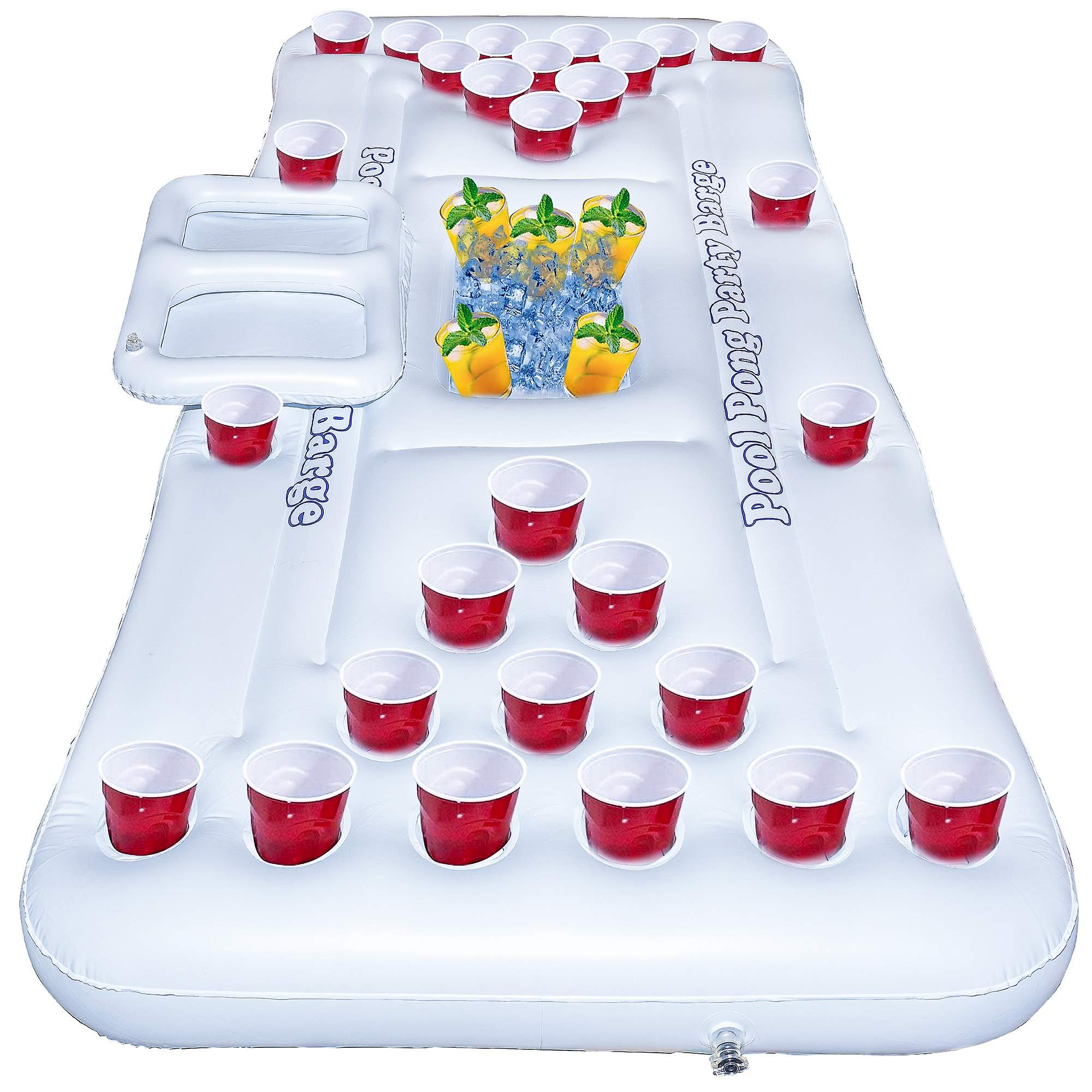 Inflatable Pool Floating Table Party Barge Bear Pong Mat With 28 Cup Holders And Ice Trays