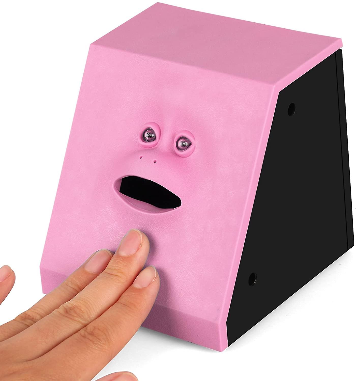 The face bank is a uniquely designed piggy bank that literally eats your money
