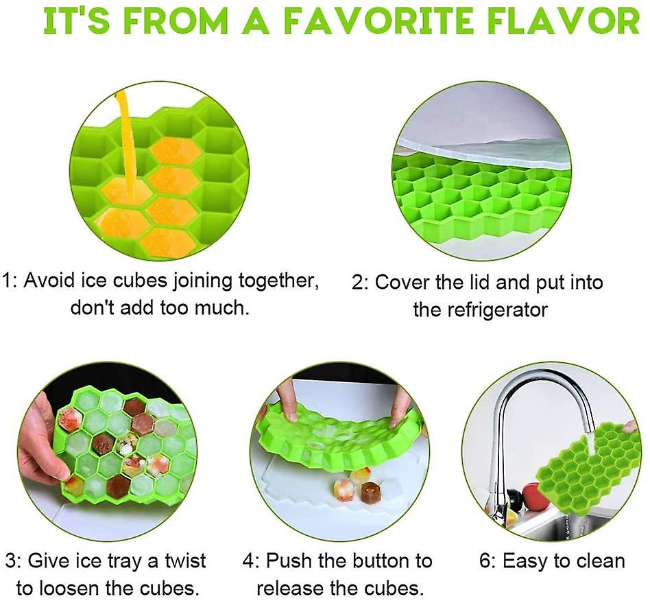 Easy to use and clean: the flexible and soft ice cube tray makes it easy to remove ice cubes from the bottom. Silicone materials are easier to clean. Fill the ice cube tray with water, close the lid and place the ice cube tray in the fridge. The ice cubes are available after a few hours.