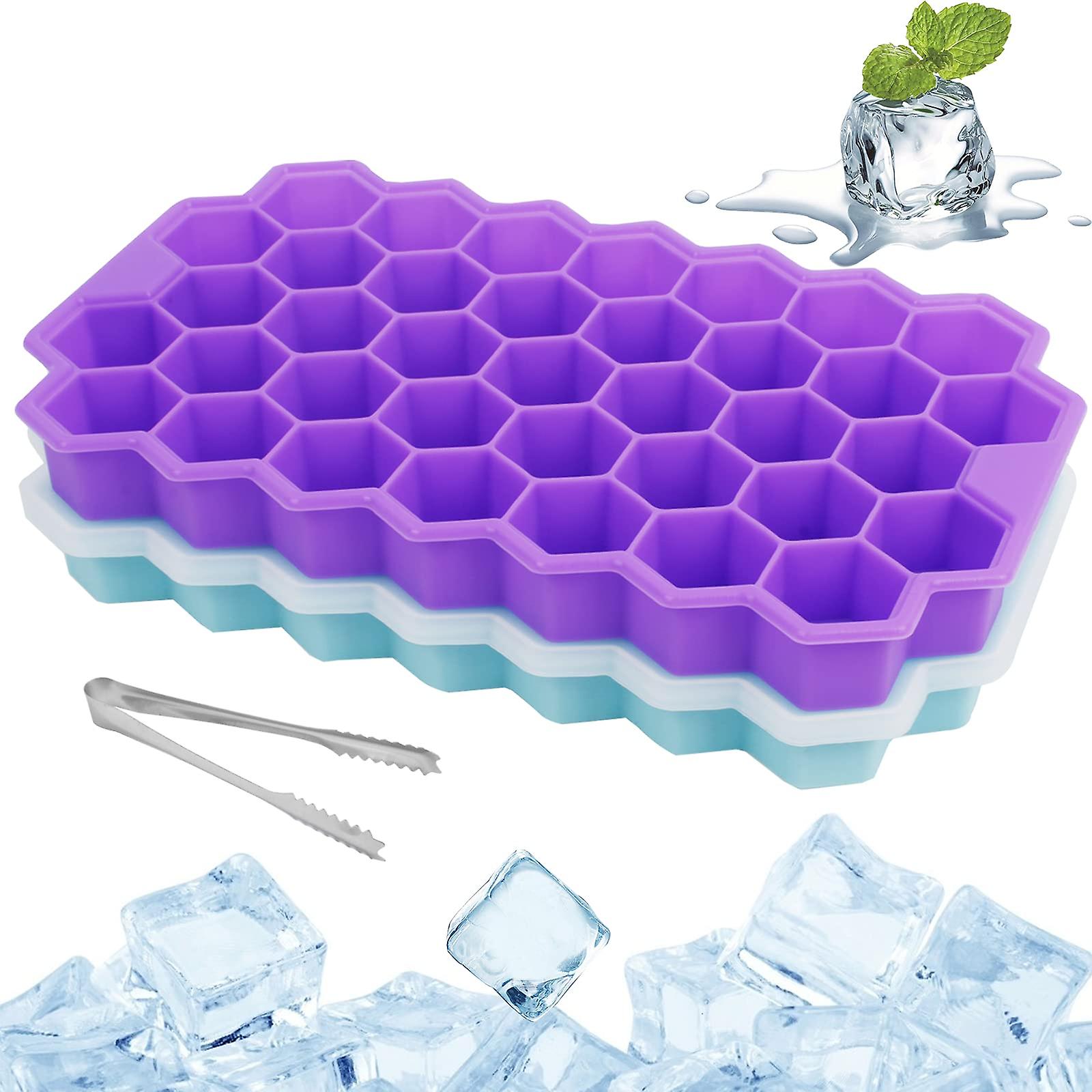 2 Pack Silicone Ice Cube Tray 37 Compartment Ice Cube Mold With Cover