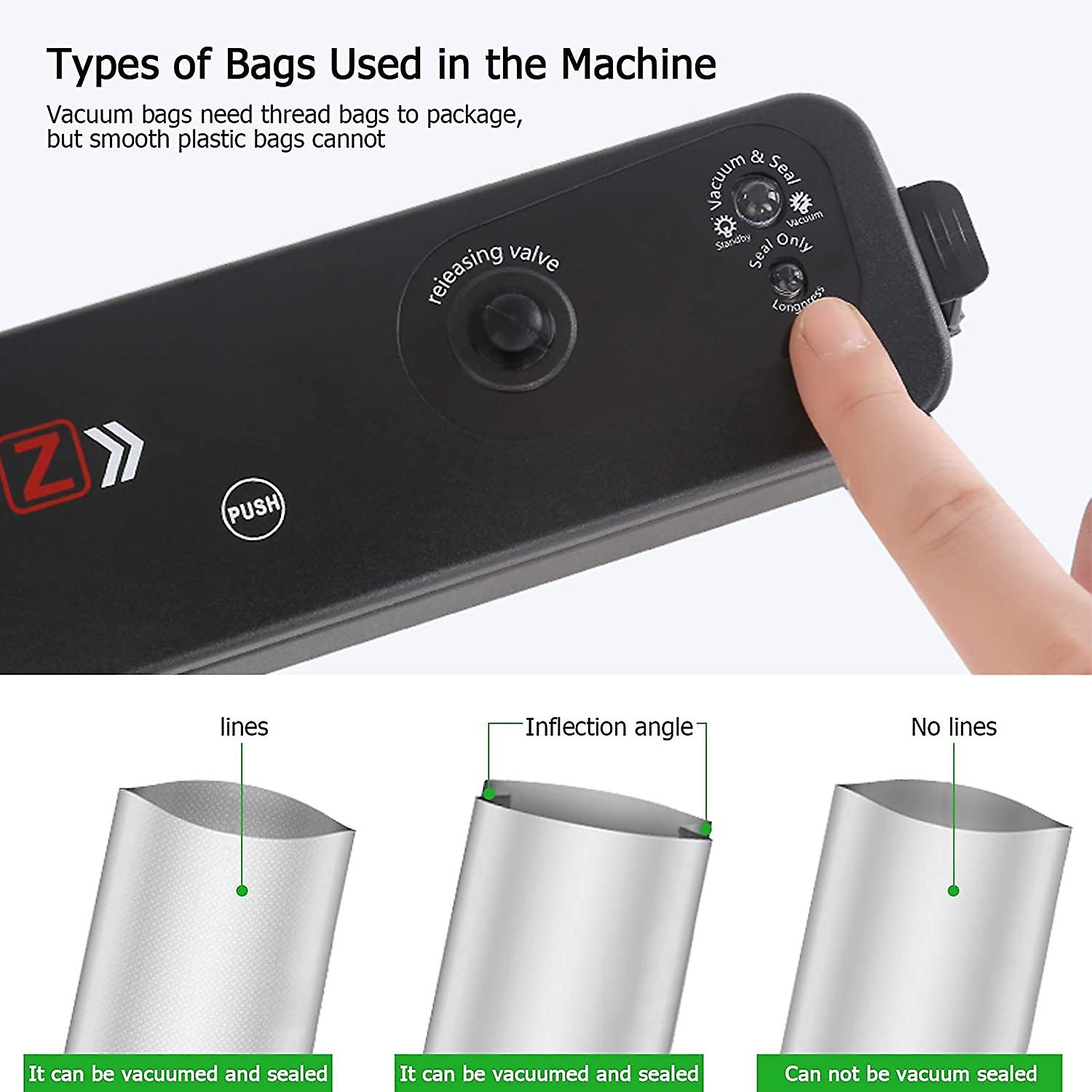 It can be used for dried fruits, nuts, wet meat, seafood, etc., or fragile foods such as potato chips. Vacuum-sealed food is easy to store food,prepare dishes in advance and seal them to save the time for direct use next time,make the air clean in the refrigerator to make food keep fresh and tidy and save space.