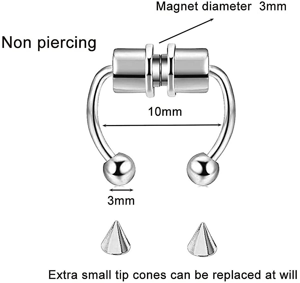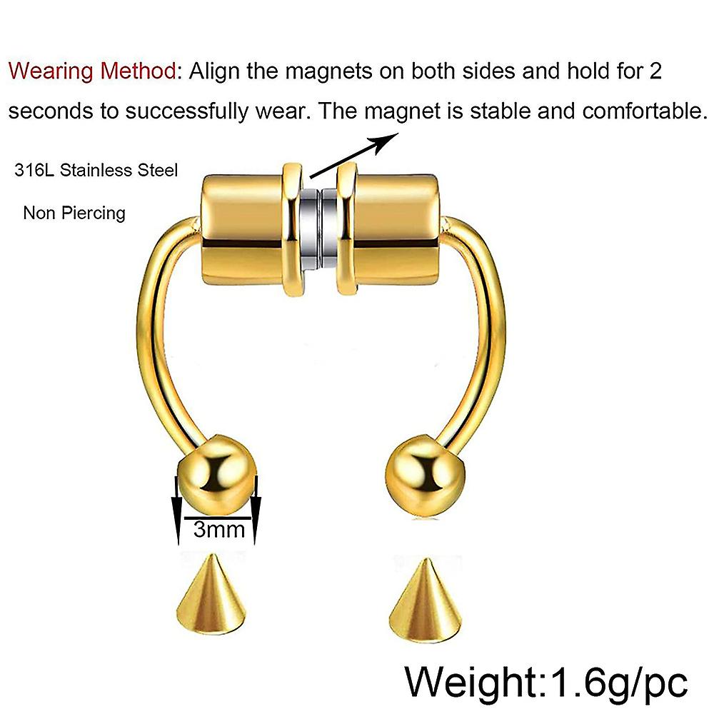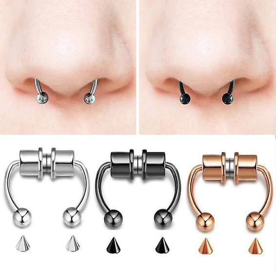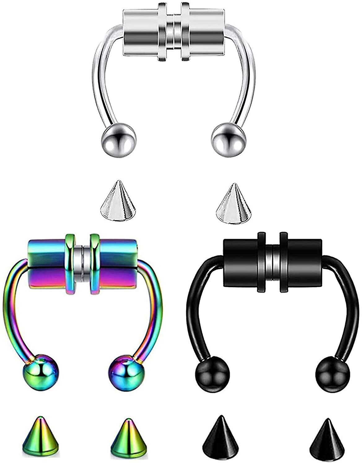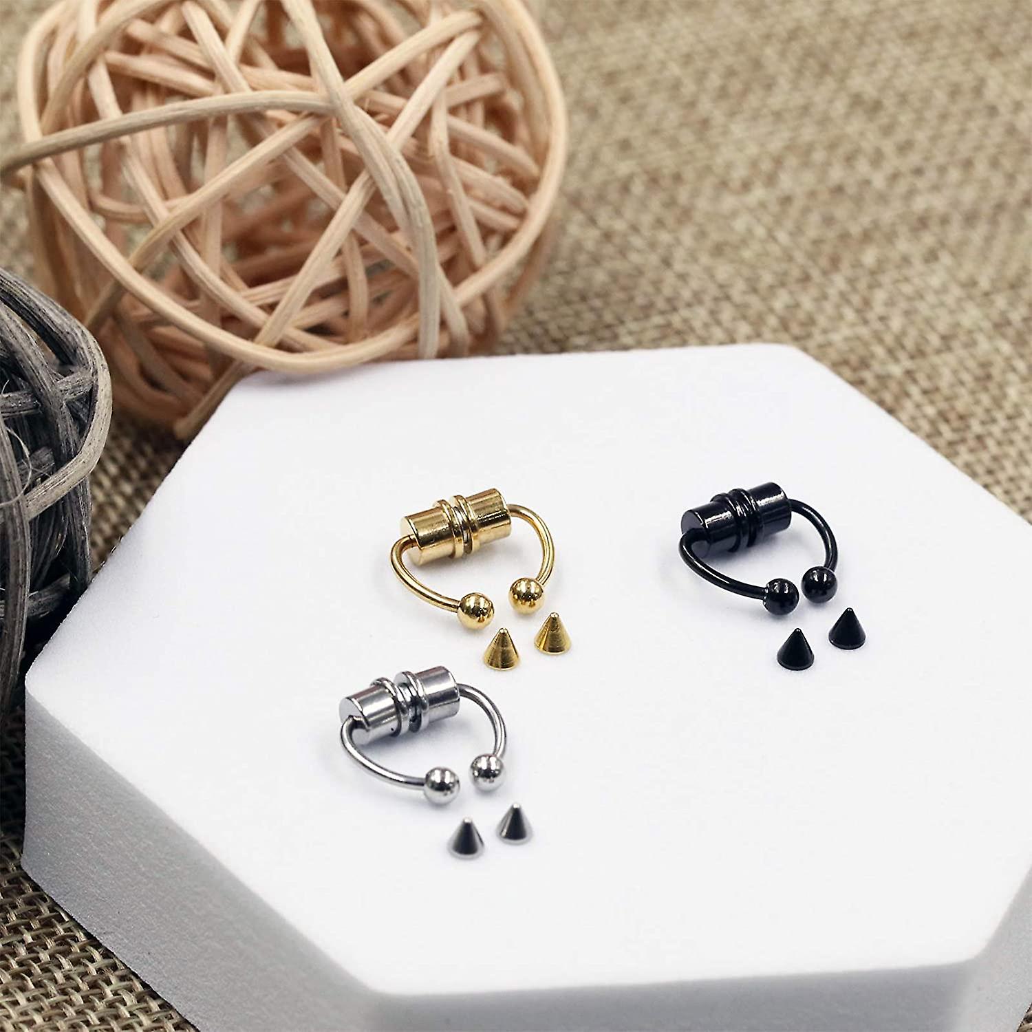 3 Pack Fake Nose Ring Hoop Magnetic Horseshoe Ring Stainless Steel Non-pierced Septum Rings