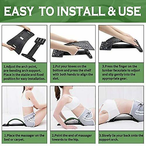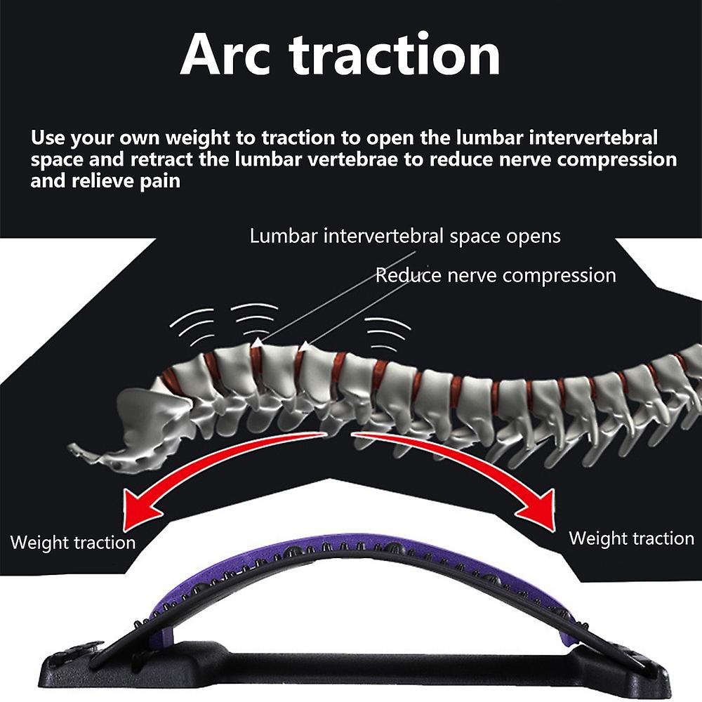 There are 10 magnetic dots and 98 plastic massage dots on the lower back stretcher, which can effectively offer acupressure to the waist, helping loosen up the tight muscles. It can also help to correct postural imbalance and let spinal return to the natural curvature.Back massage stretcher has 4 slots for height adjustment to fit people of different ages and abilities. The higher the arch of back support, the stronger the stretching force is, so fix back stretcher device at the most comfortable and recommended to start with the flattest level.