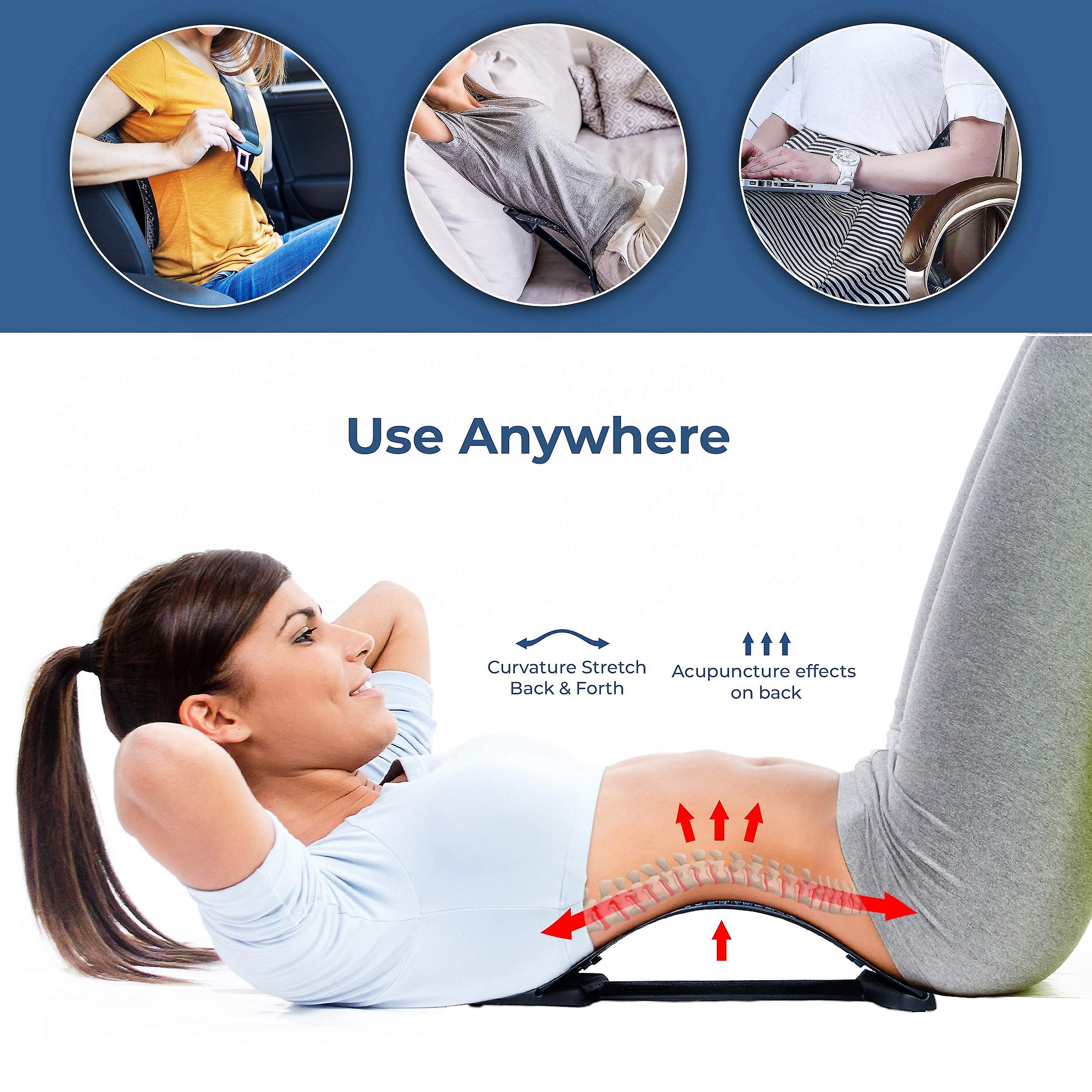 Spine Stretcher is a home Sciatica Pain relief Treatment, it is lightweight and required no batteries, so it is portability enough to carry and store,you can enjoy it in home, car, gym,office and everywhere you want. Using this Lumbar Back Stretcher about 5-10 minutes once for Lower Back Pain, or just using it as a daily seat waist cushion to keep Spinal Decompression and health