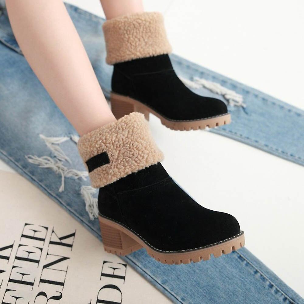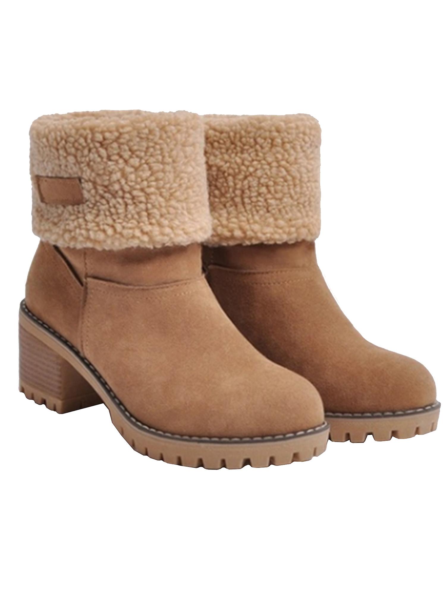 Women Winter Boots Short Snow Flock Warm Bootie Shoes Slip On Short Ankle Chunky Heel Boots