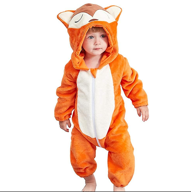 Baby Winter Animal Costume Flannel Hooded Jumpsuit Zipper Romper Cosplay Outfits