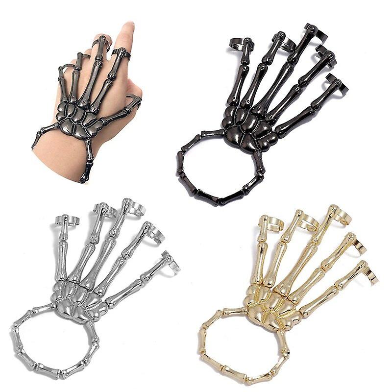 Skull Ghost Finger Bracelet Halloween Skeleton Hand Chain Punk Style Women Metal Jewelry
