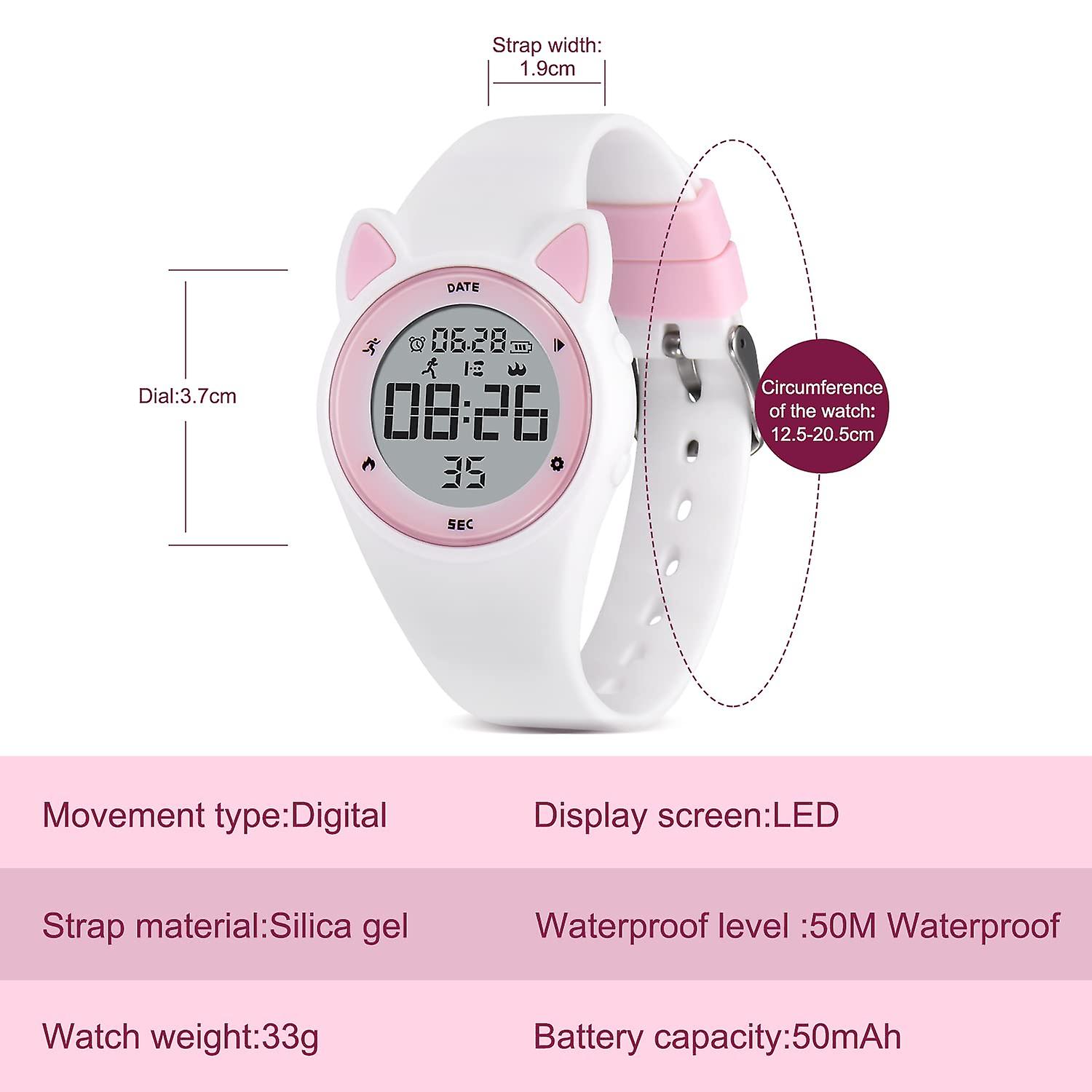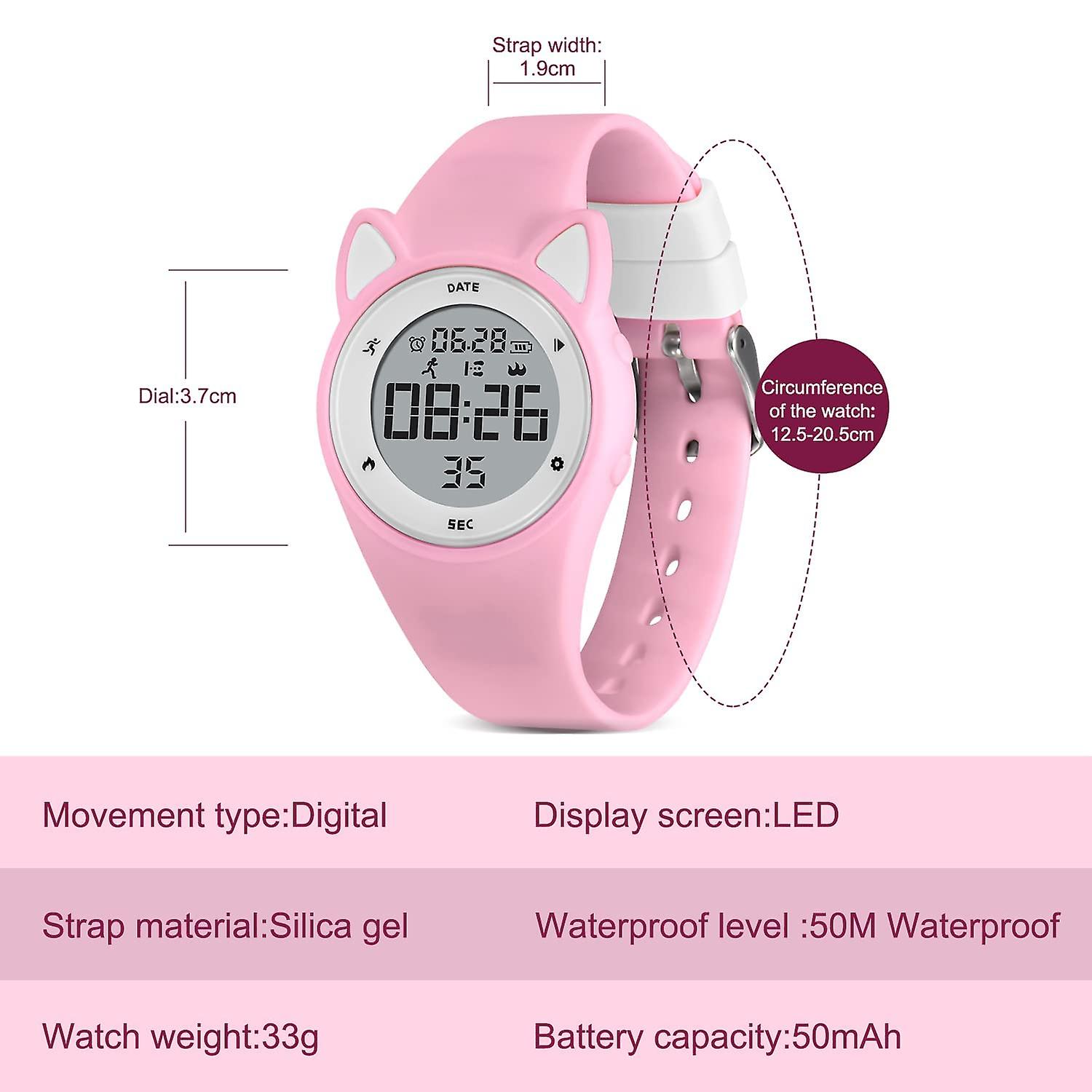 Waterproof and Rechargeable: The Digital Sports watch support 50M waterproof, do not need to fear of rainy days, wash your hands and face. Not only that, our girls watch also supports charging (take off the shell and insert the power) and lasts 10/30 days on a full charge. If we don't need a lot of features, the watch will be a better choice for kids than those complicated smartwatches that recharge every day.