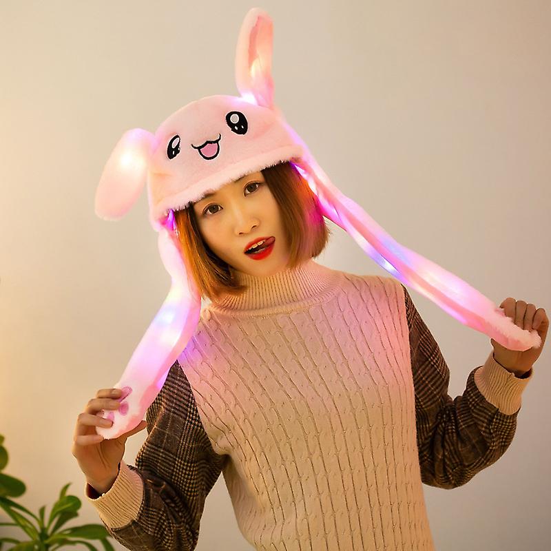 Led Glowing Plush Bunny Funny Hat With Moving Jumping Ears