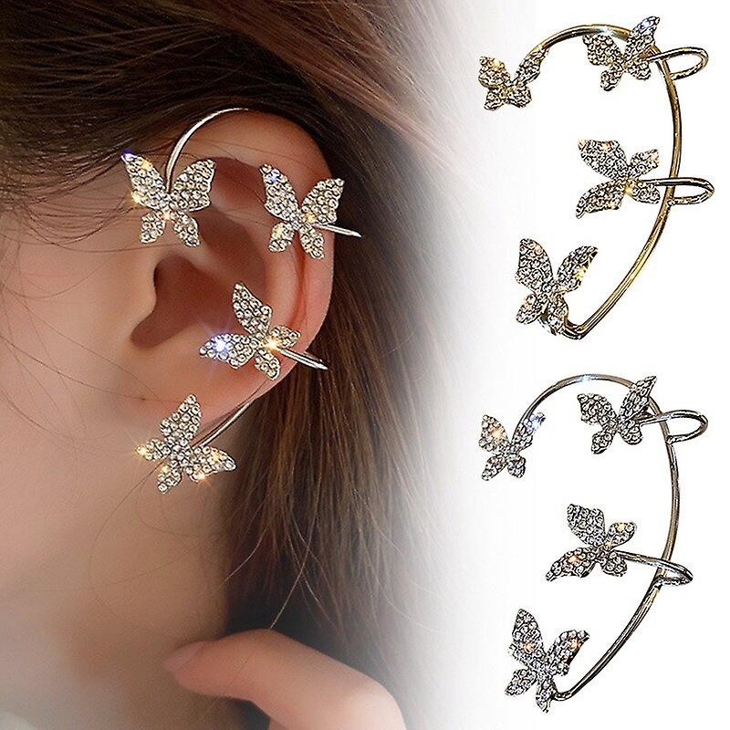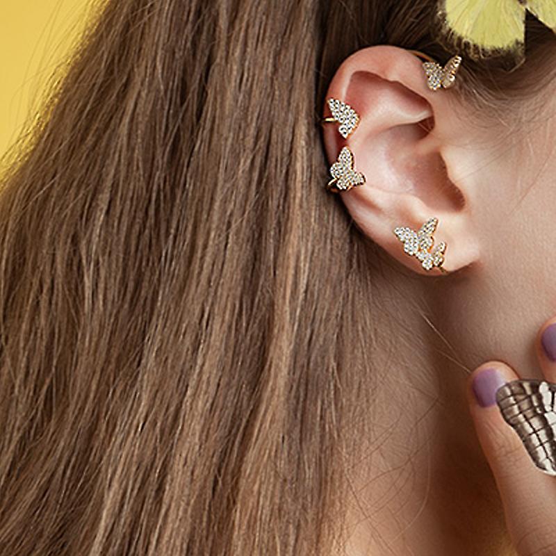 Zircon Butterfly Earrings Sparkling Ear Clips Ear Cuff Wrap Woman Girls Jewelry Gifts