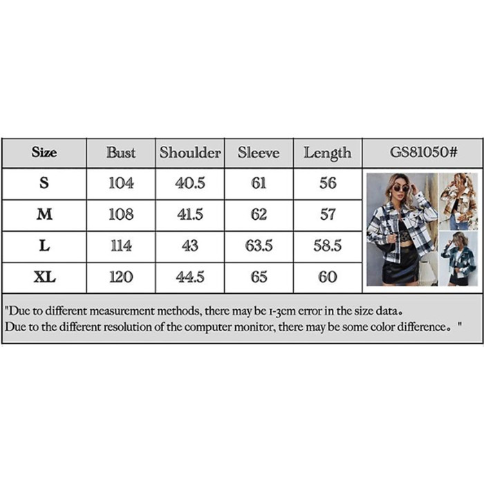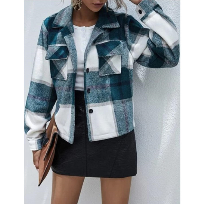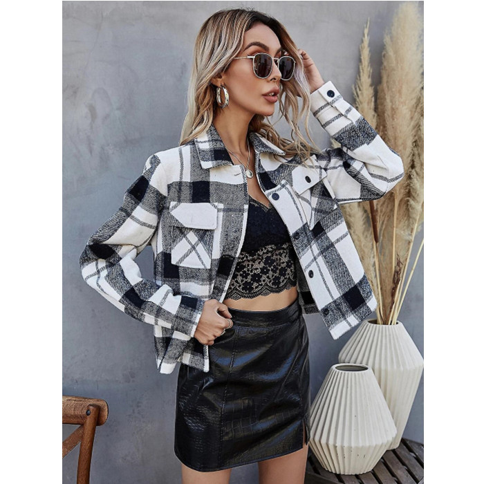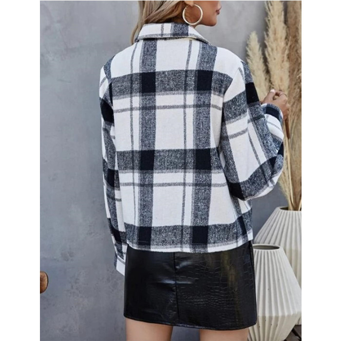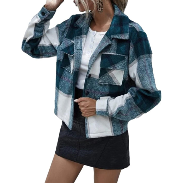 Women Long Sleeve Button Down Jacket Ladies Autumn Plaid Coat Short Overshirt