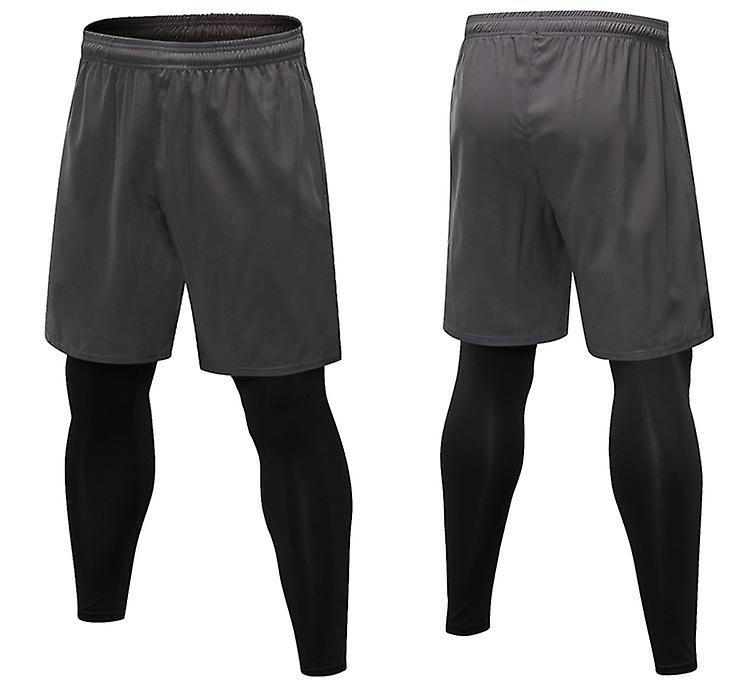 Men 2 In 1 Running Shorts Compression Pants Sport Leggings Breathable Quick Dry Tights