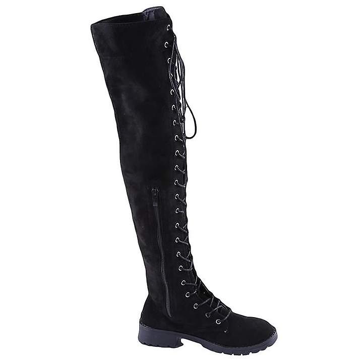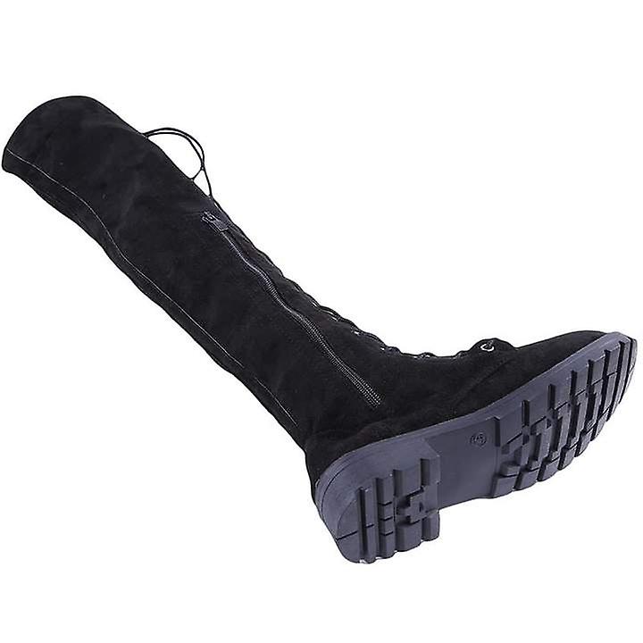 Lace Up Over Knee Boots Women Low Heel Boots Winter Flock Knee High Flats Shoes