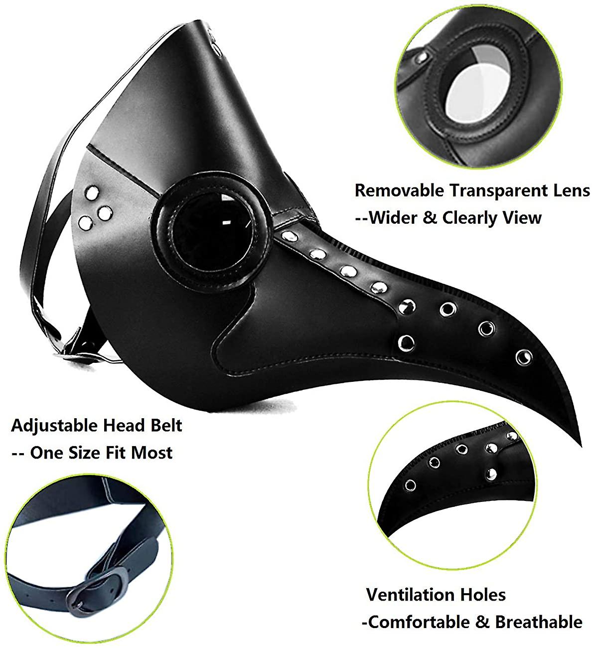 LUXURY PLAGUE DOCTOR MASK The new fashion plague doctor mask steampunk gear to give you a luxury and mysterious look. The plague doctor mask can be worn both as a carnival costume and as a frightening Halloween costume. An iconic look for all sorts of spooky realms.