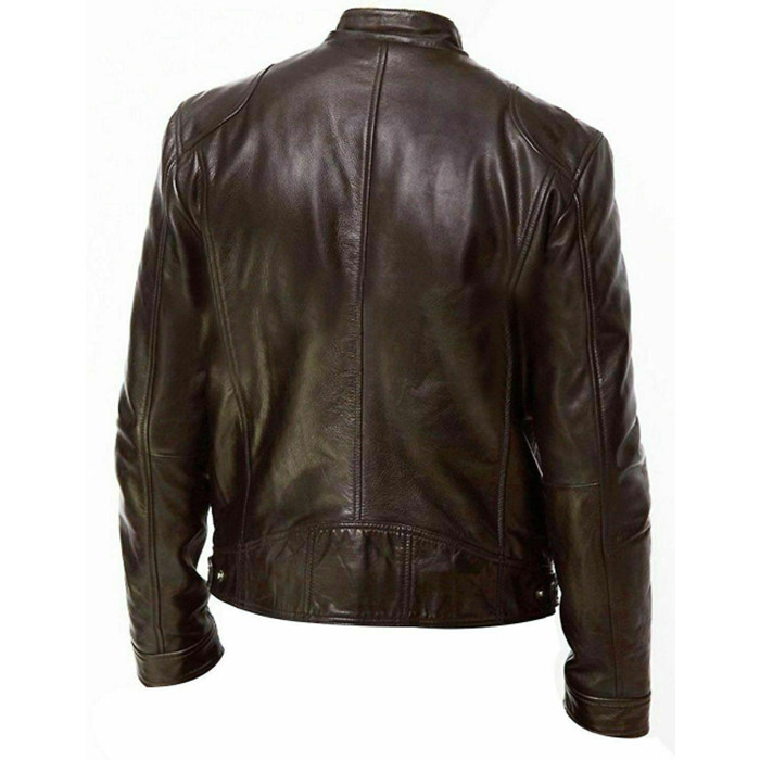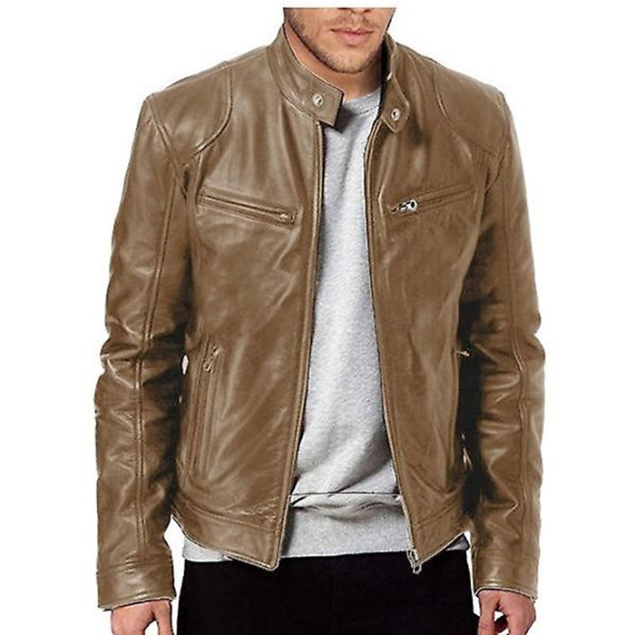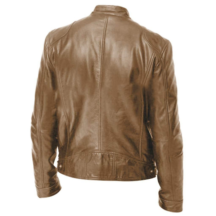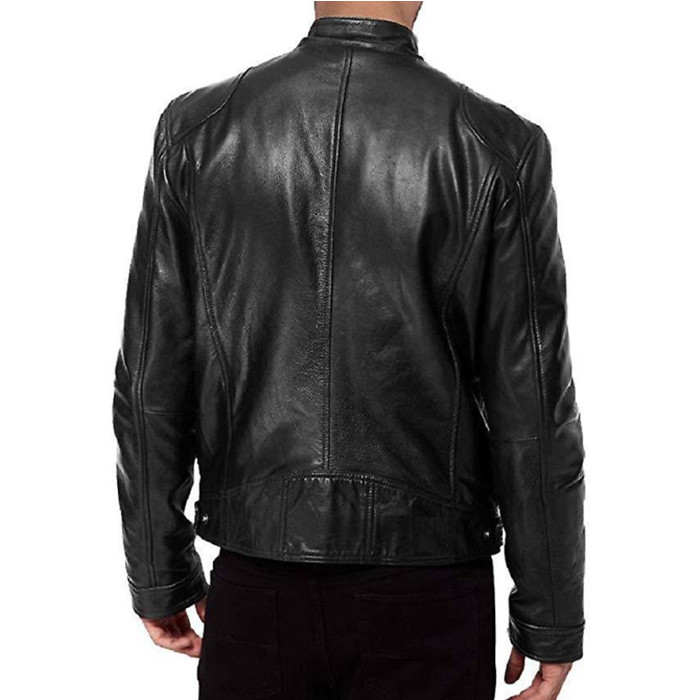 Men Winter Leather Jacket Long Sleeve Zipper Slim Biker Coat Stand Collar Casual Outerwear