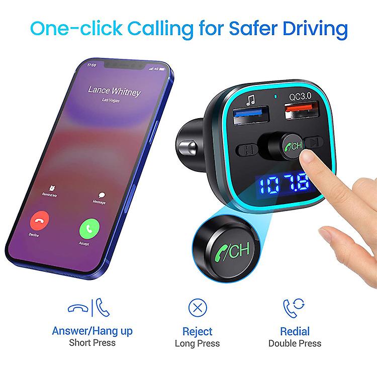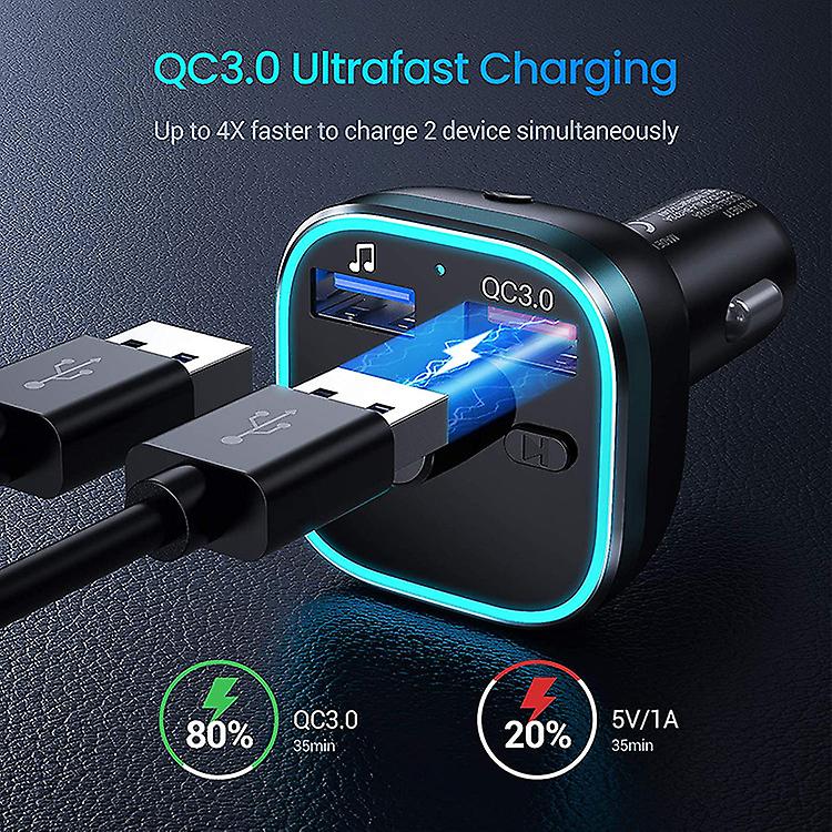 Car battery voltage display and ambient light: the transmitter car displays the vehicle voltage as soon as it is connected to the car cigarette lighter. Then you can easily know the car battery condition. The blue light circle below simplifies operation for safe driving.
