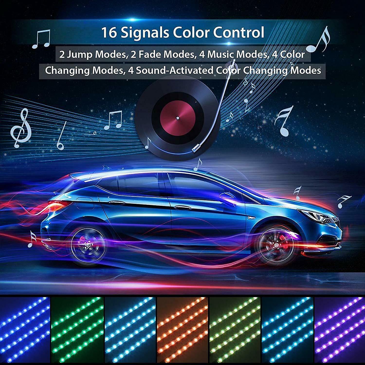7 Color RGB LED Car Interior Atmosphere Lights, Wireless Music Remote Control enable you to change the color and adjust the brightness as you wish, also Sound-activated Function allow you to enjoy the fun with the color changing following your car stereo music rhythm as well as your voice.