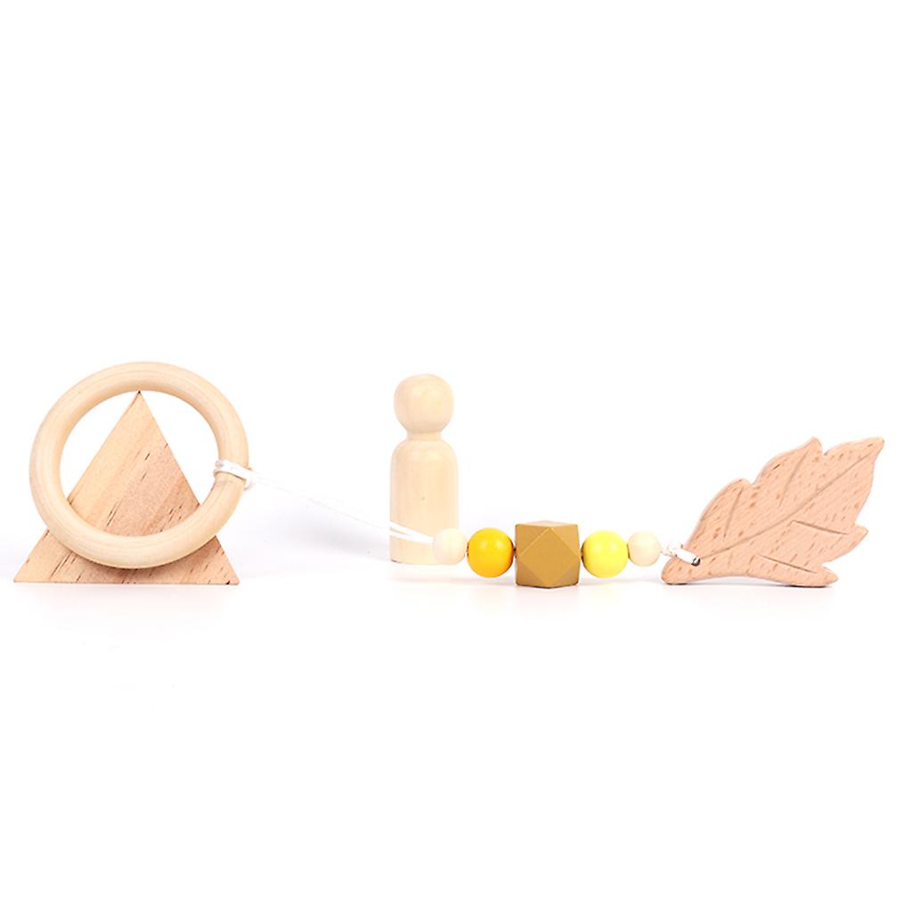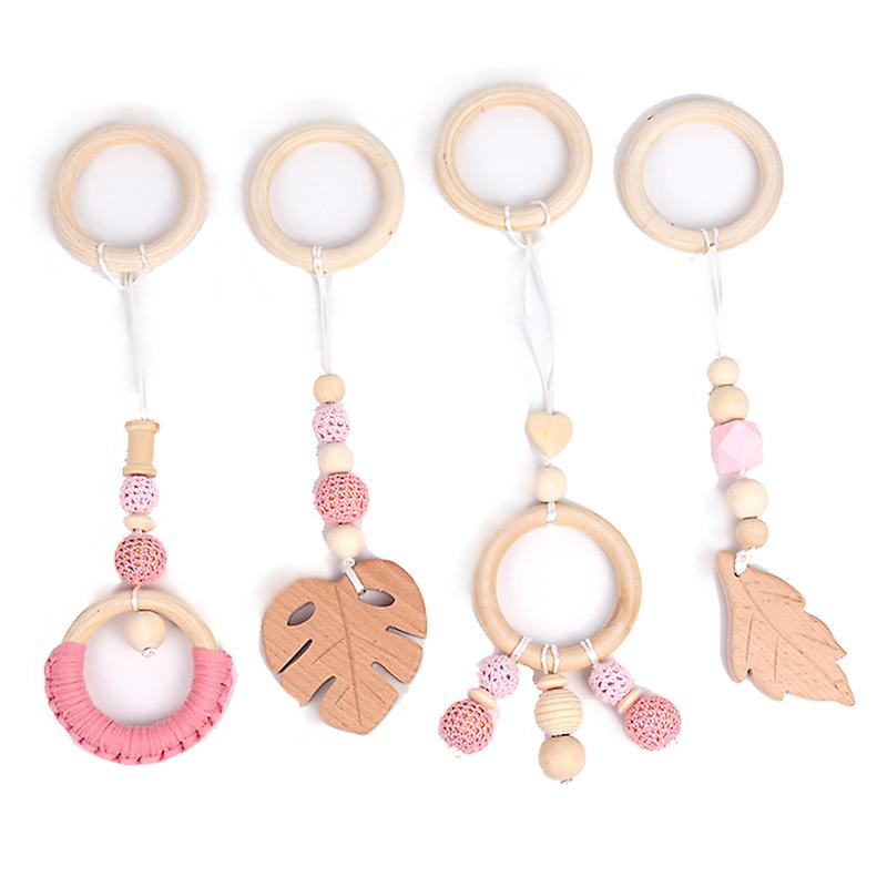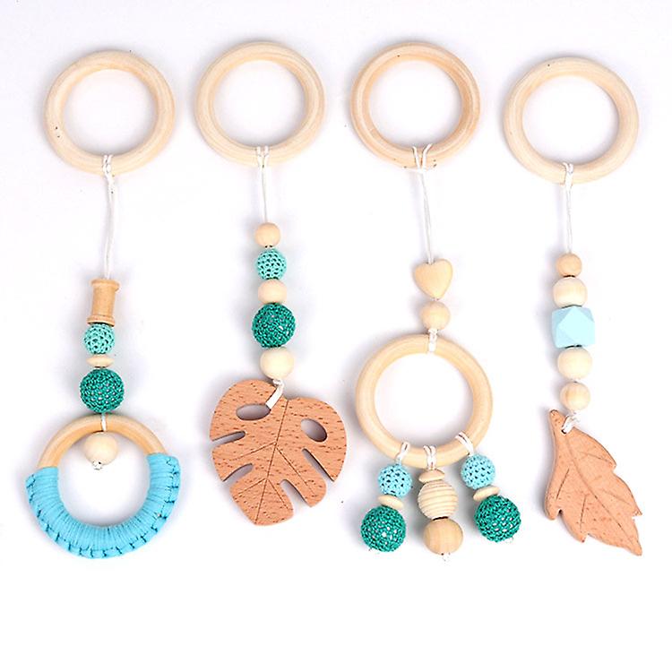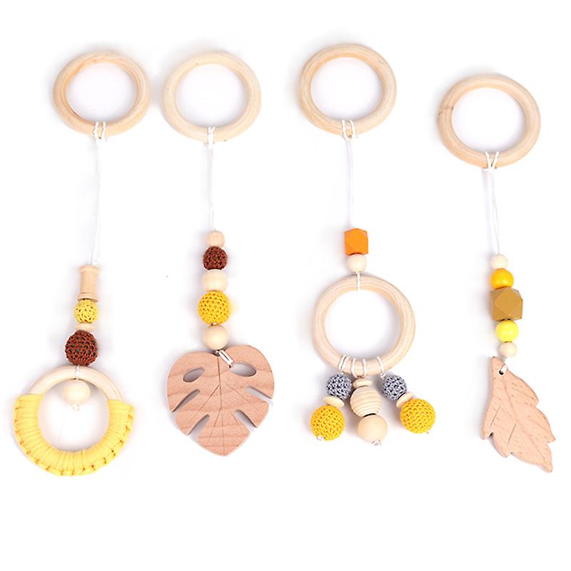 4pcs Hanging Wooden Teether Baby Teething Ring Pendants Stroller Molar Rods Play Gym Toy