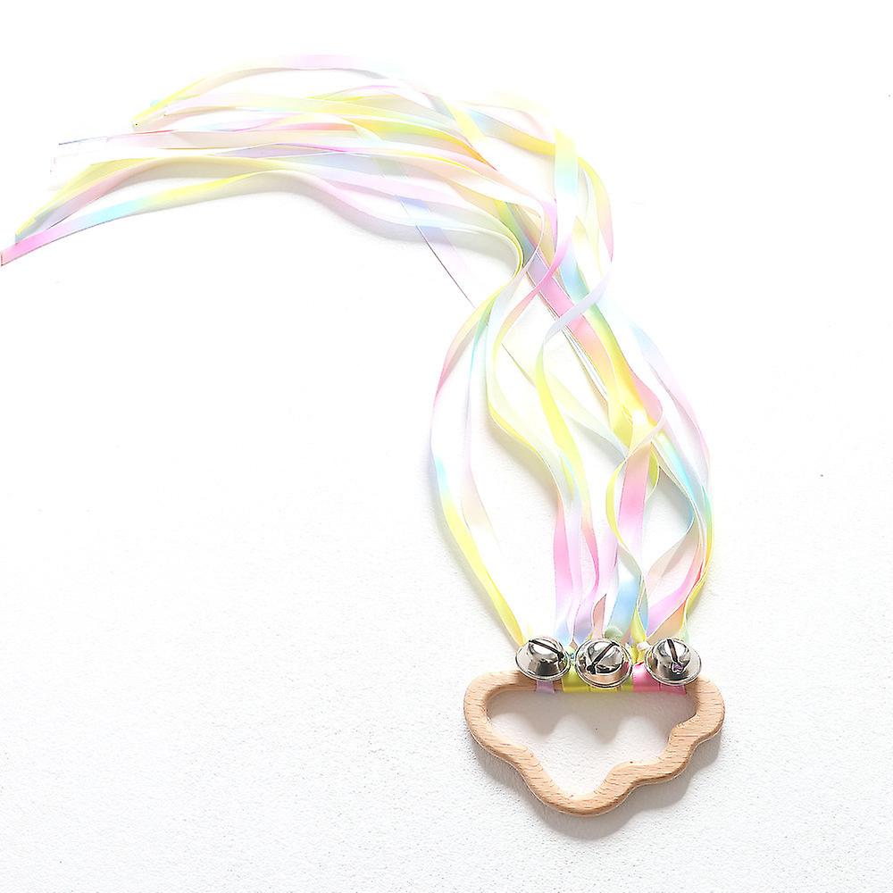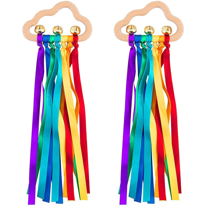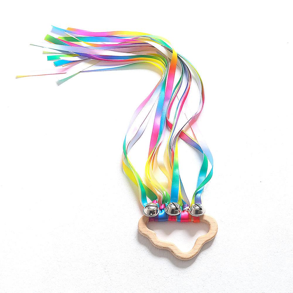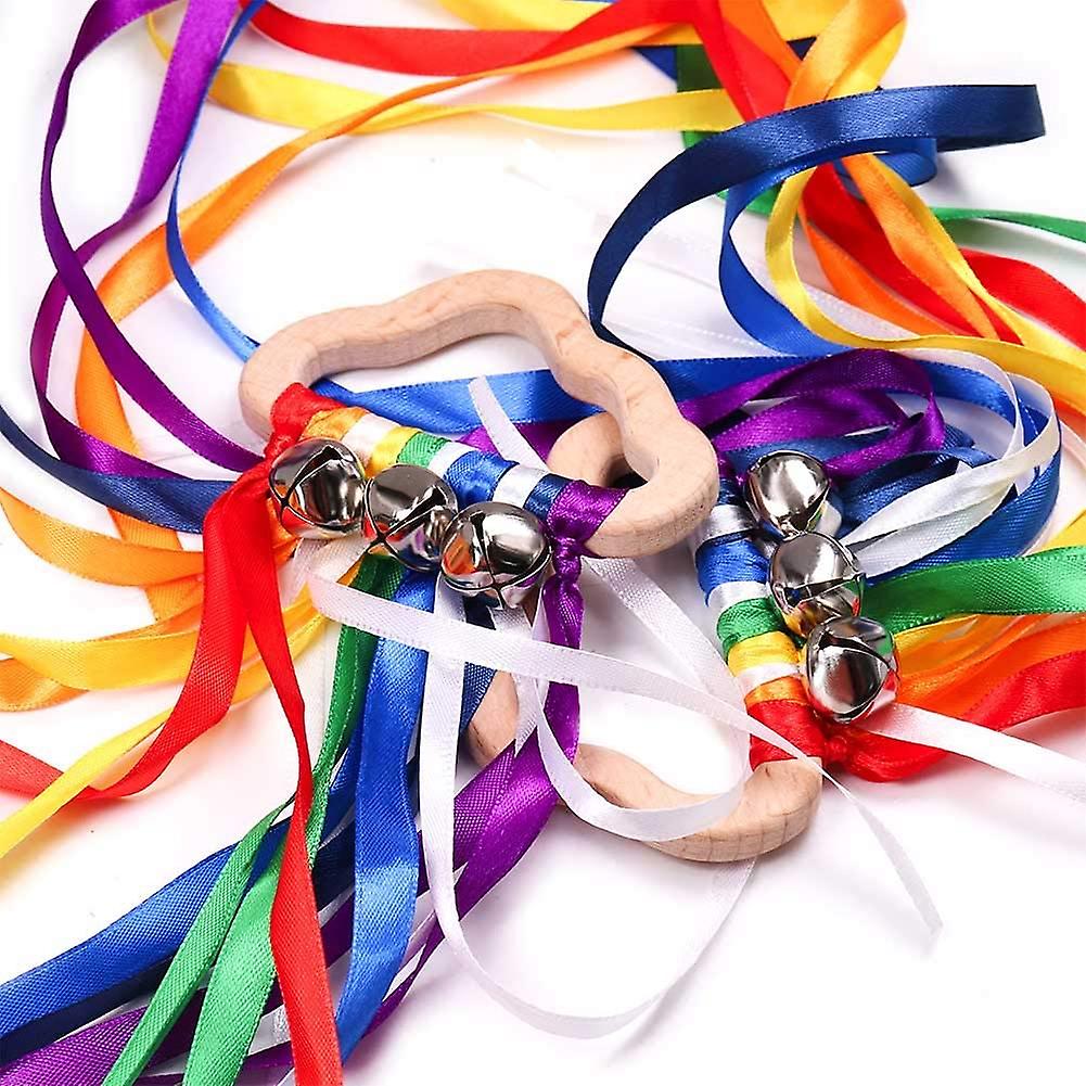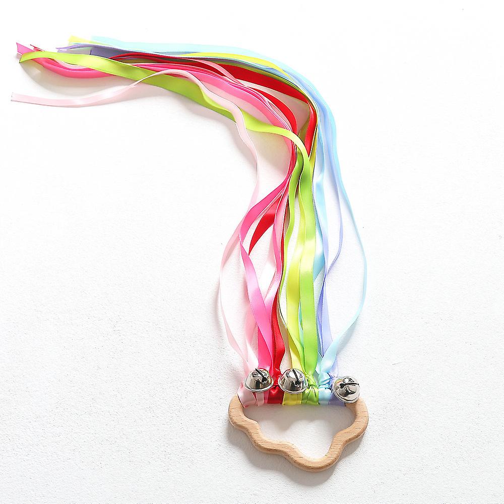 2pcs Rainbow Ribbon Rattle Ring Toys Molar Wooden Circle Baby Teether Sensory Toy Gifts