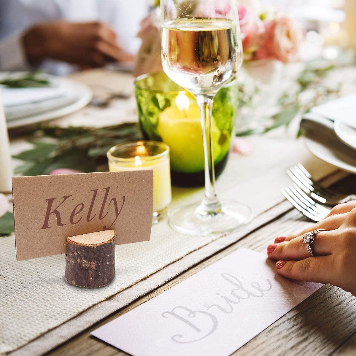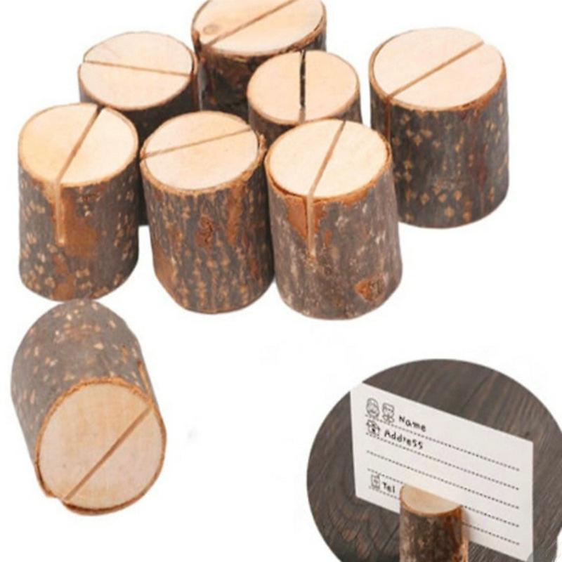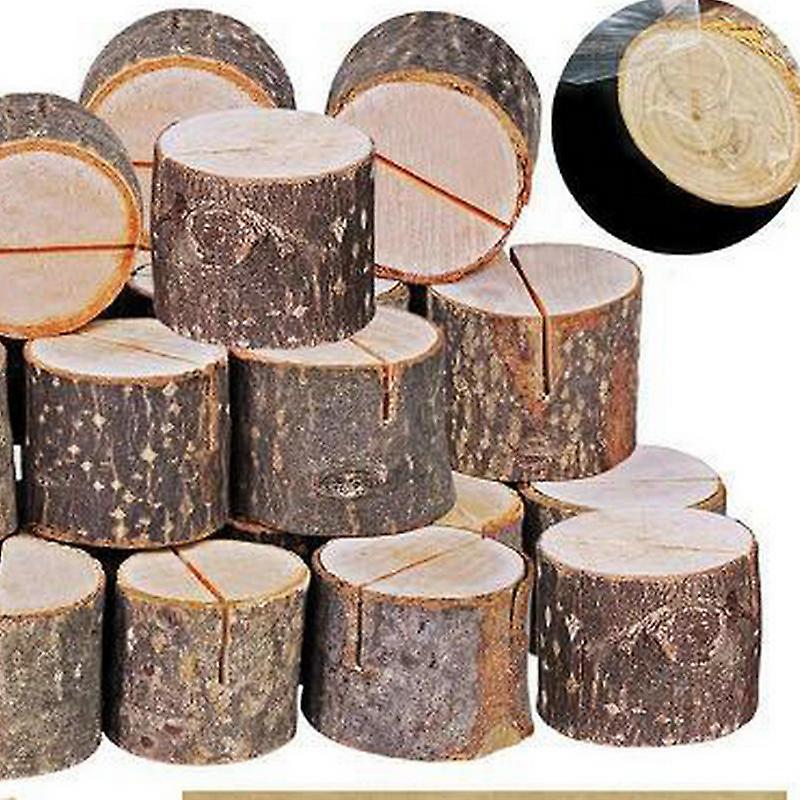Each small tree stump-shaped holder fits either the place or a photo in the slot. These stumps suit for holding your Table Numbers, Mini Menu, Cards, Photos, Postcards, Photographs, Picture, Business card, Place Card, Label Tags, Escort Table Markers, Wedding & Party Table Food Markers, Drink & Beverage Bars, Chalkboard Table and Food Markers, Wedding Table Numbers, Escort Signs, Buffet Food Signs, Candy Buffet Table Signs, Name Tags, Garden Tag Names and much more.