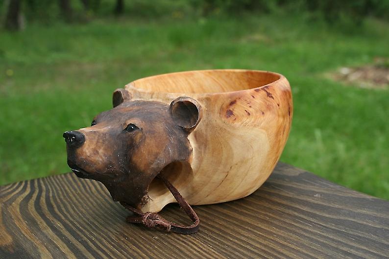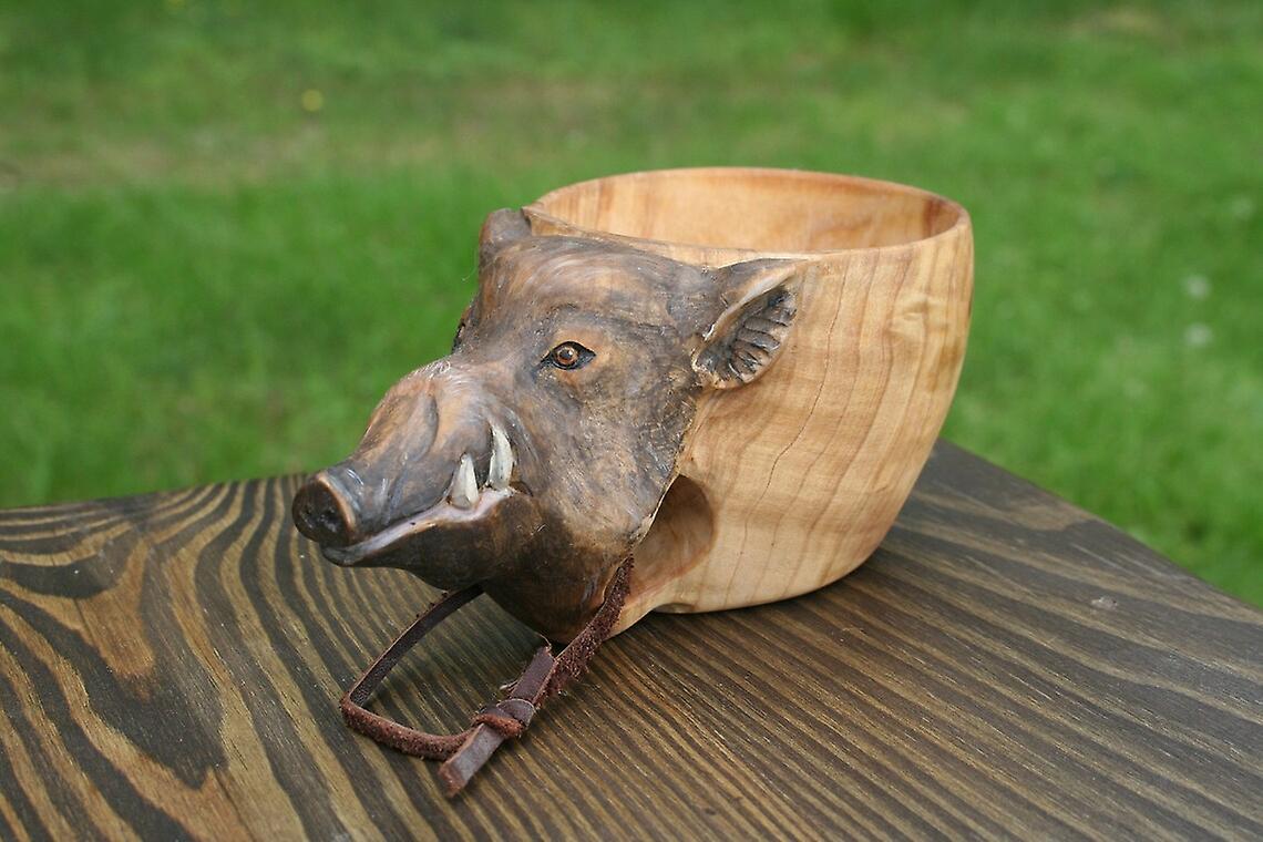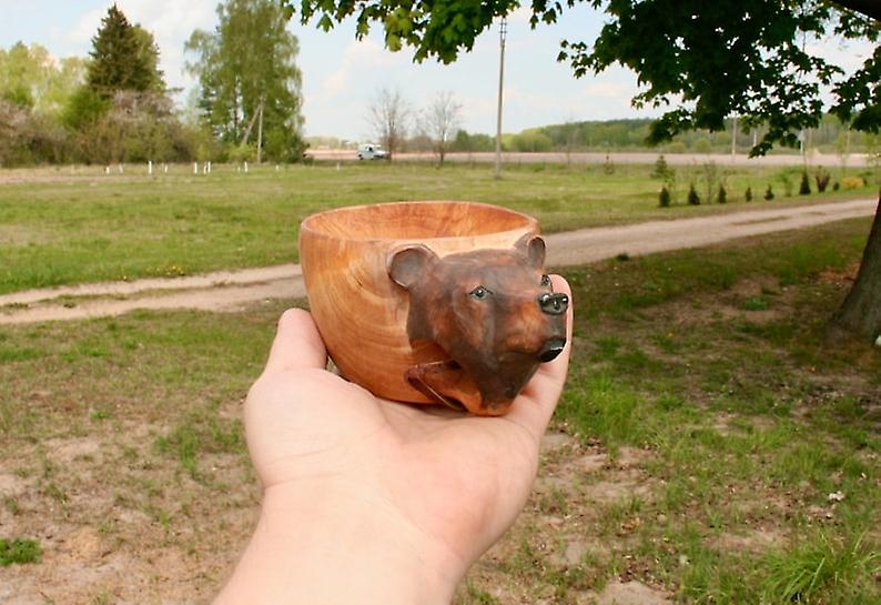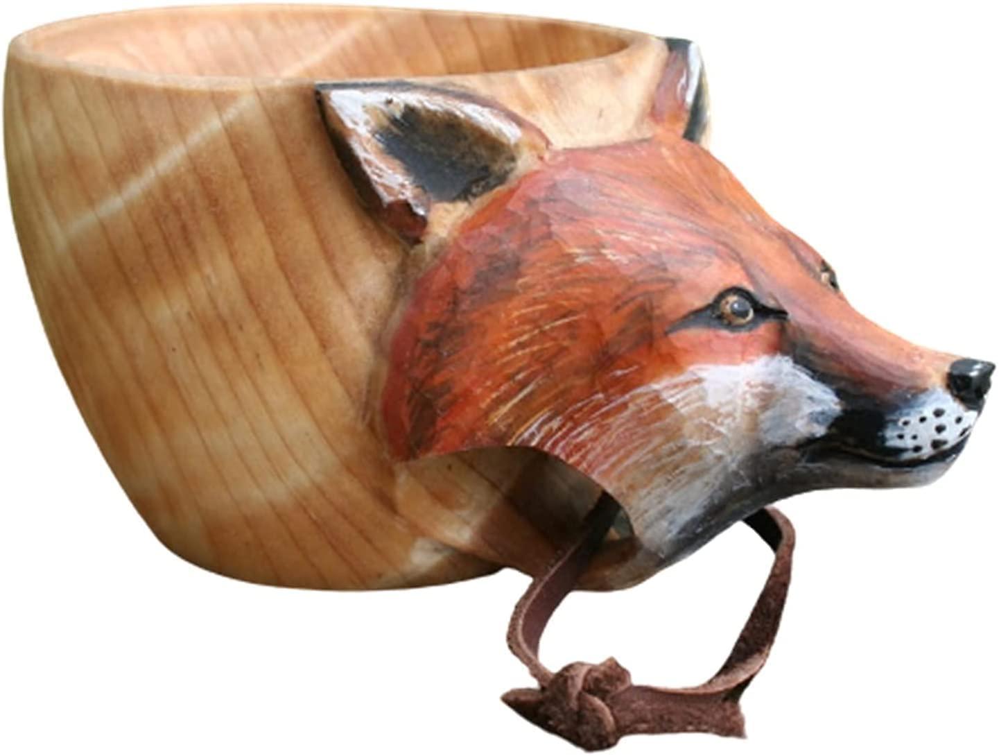Hand Carved Wooden Mug Animals Head Image Cup For Travelers Outdoor Camping