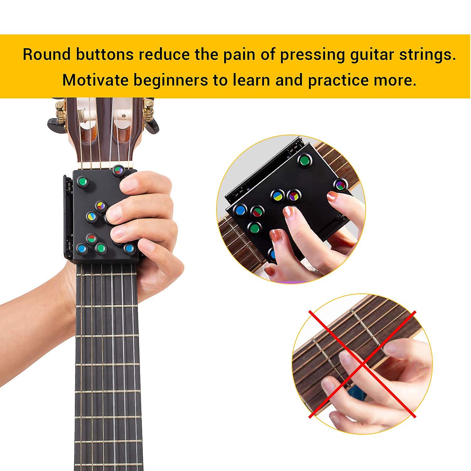 Relieve Finger Pain: The guitar learning tool has round button design eliminates the finger pain of pressing strings. Keep your fingers comfortable in the early stage of learning guitar.
