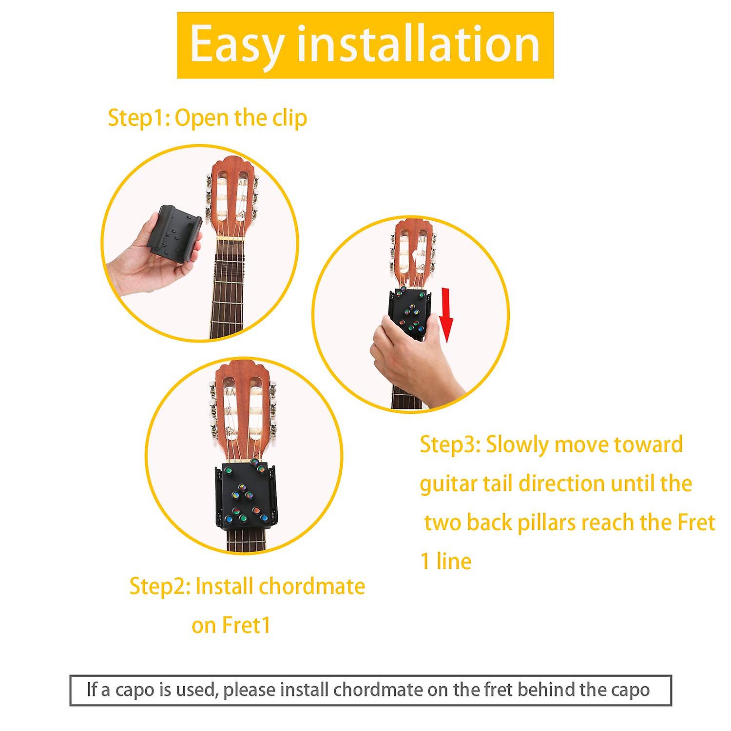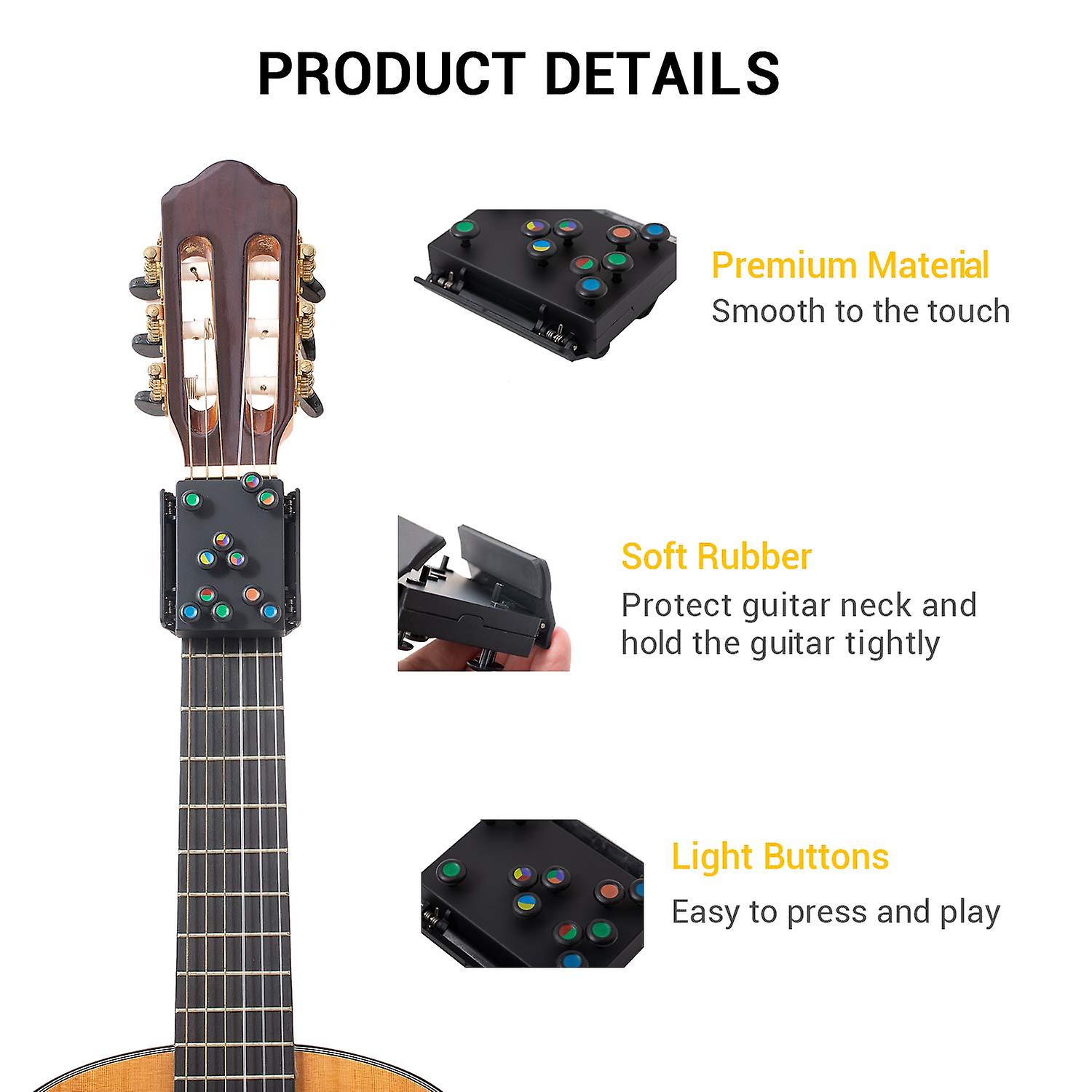 Durable Material: The guitar beginner one-Key chord is made with durable ABS material, which is smooth to touch. Soft rubber on the clips keep the tool chord tool from slipping off the guitar.