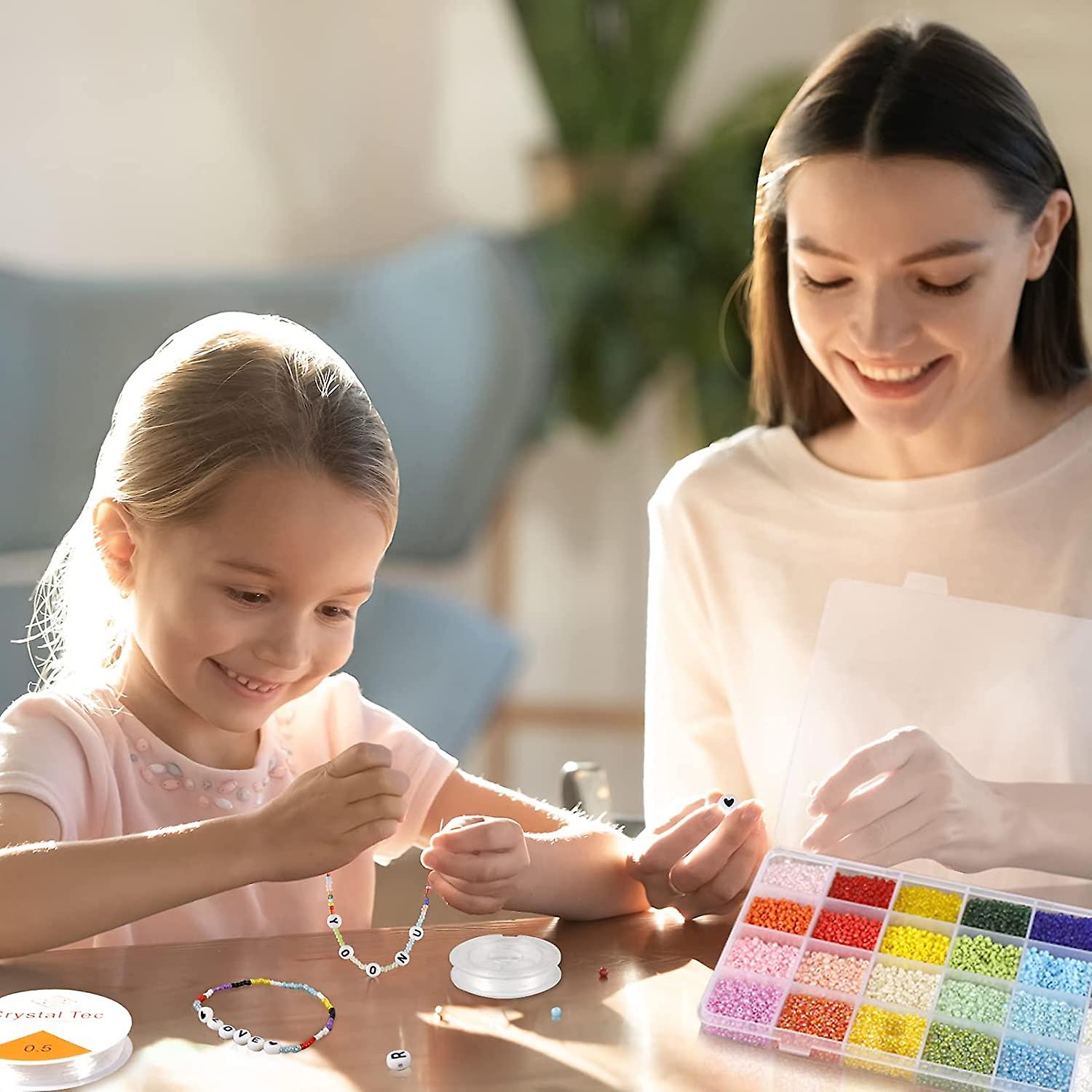 Suitable for all ages: Children, teenagers and adults can join in the fun of the crystal seed beads jewelry kit. Our letter bead set contains completely 26 letters, not random, you can weave a personalized bead bracelet.