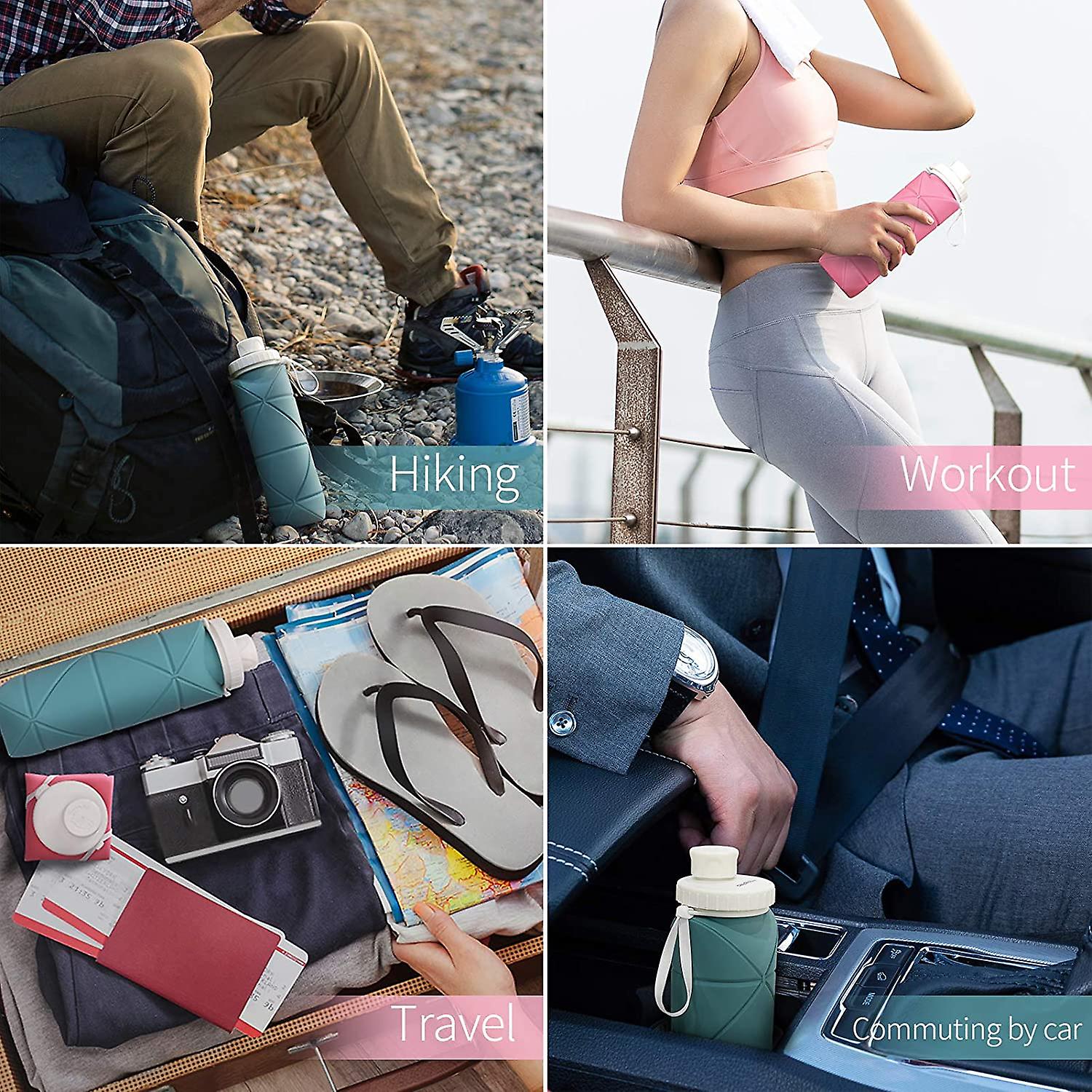 Collapsible Water Bottle Leak-proof Heat-resistant Travel Bottles 600ml