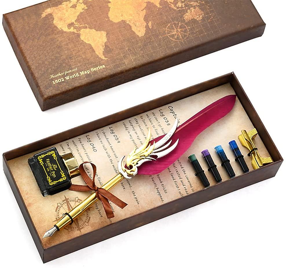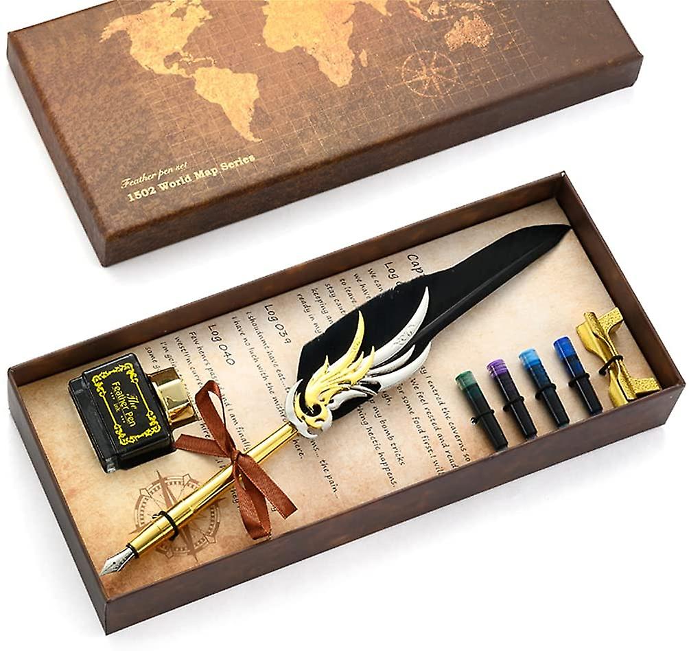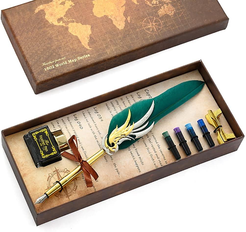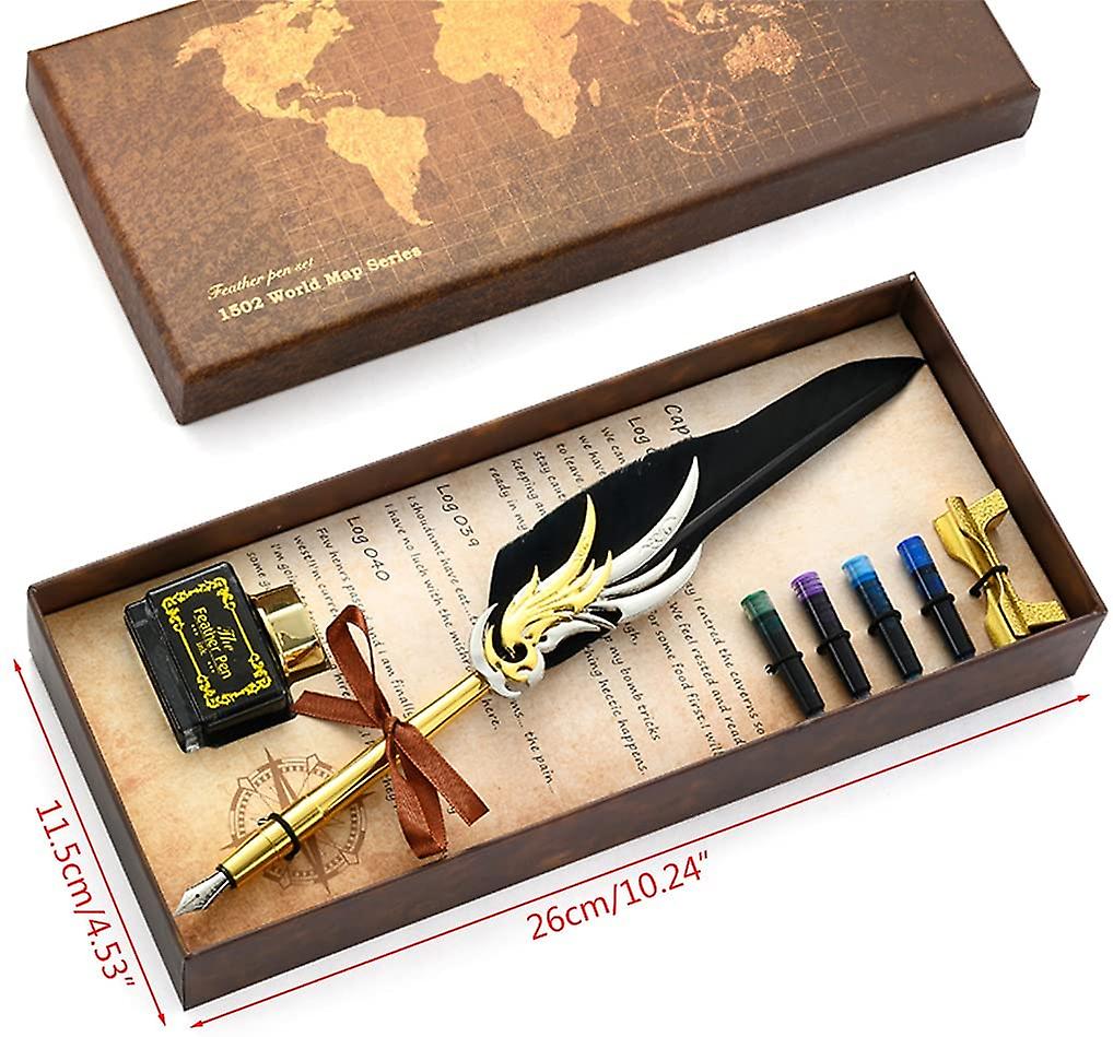 Quill Fountain Pen Set Antique Fountain Pen Ink Kit Vintage Calligraphy Feather Dip Pen Gifts