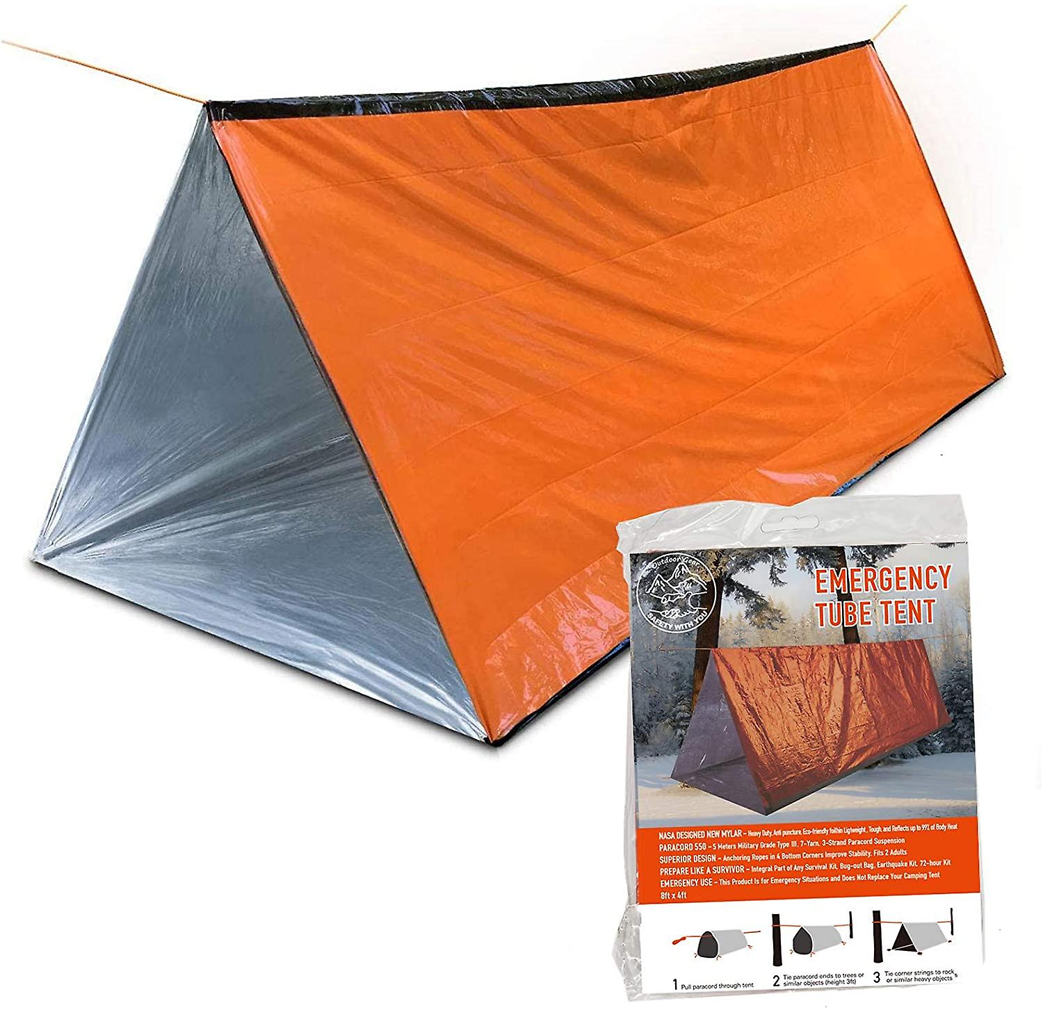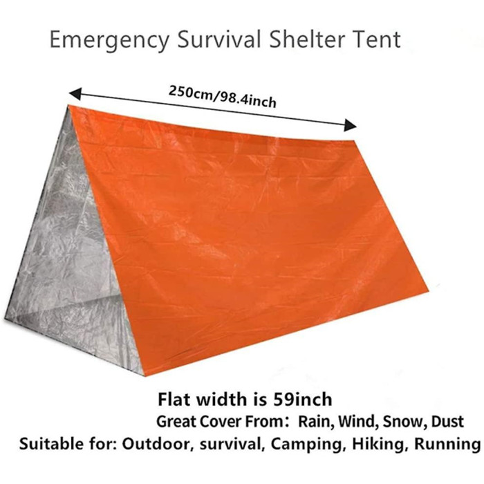 2 Person Polyethylene Terephthalate Heat Shelter: Comes with a 59.1 x 98.4 inch heat shelter for 2 people, large size that can support full body protection. Practical and comfortable This is a tube tent that comes with a running rope / ridge line under the top so it will hold its shape.