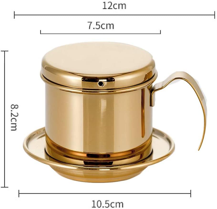 You can definitely feel the great quality Vietnamese coffee filter press when you hold it in your hands. The surface of the coffee maker is well polished so it looks really bright. The gold color indeed brings great royalty to a normal coffee dripper. Great gift to friends or family members who love coffee.The drip cup is used to make Vietnamese coffee manually. Drip coffee Vietnamese is widely used at home, office, business trip, etc. The coffee filter is lightweight, easy to carry to outdoors.