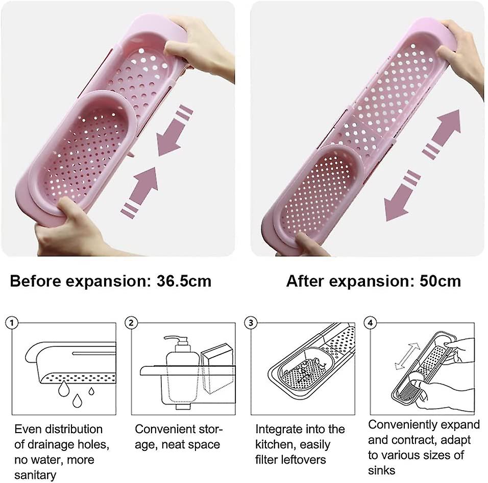 Scalable Design: The adjustable sink storage rack can freely adjust the length according to the size of the sink, to meet different needs, suitable for square sinks from 36.5 to 19.7 inches.