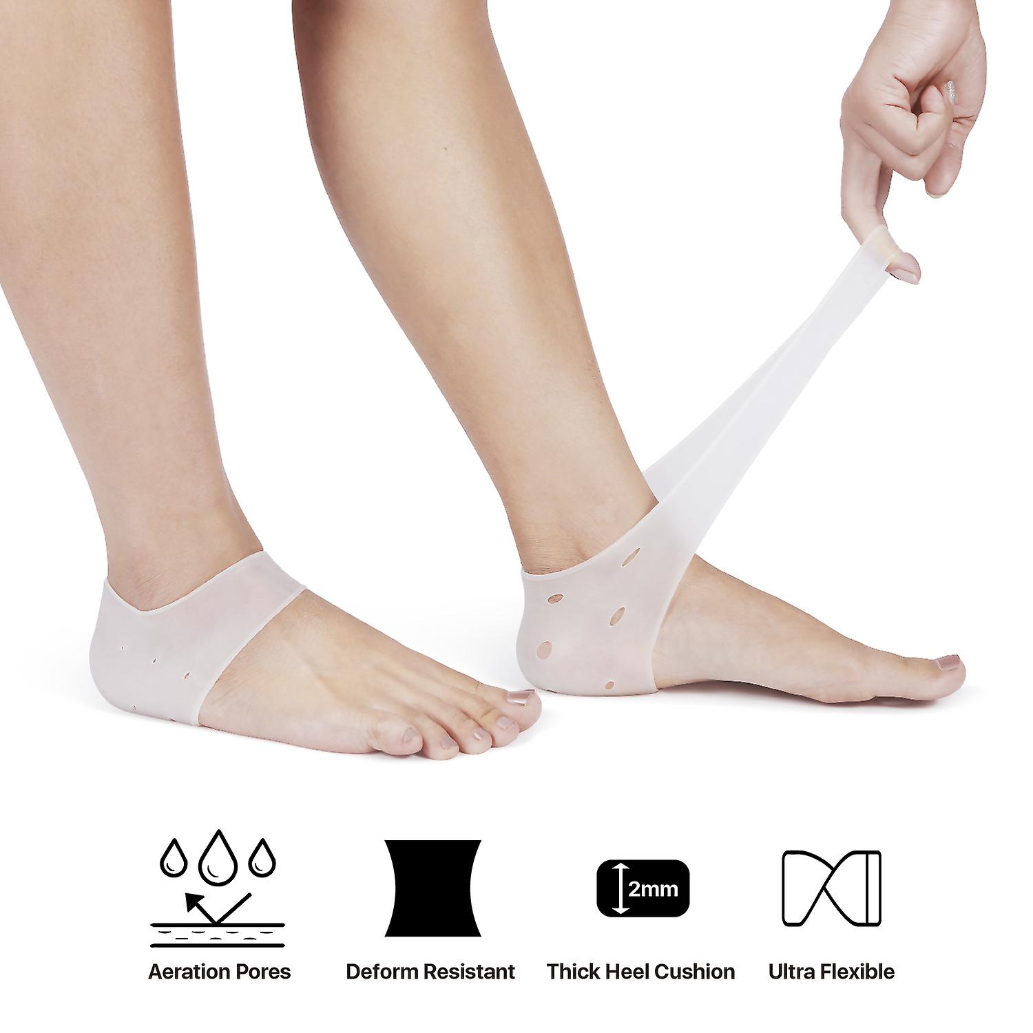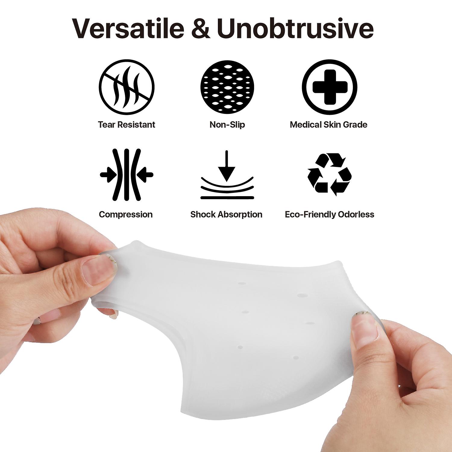 Every day footwear: Simply stretch and slip the heel protectors onto your feet, and you will feel perfectly comfortable wearing socks, shoes, sneakers, and boots. With breathable air holes on the side vents and it also massages your heel. Unisex for both men and women.