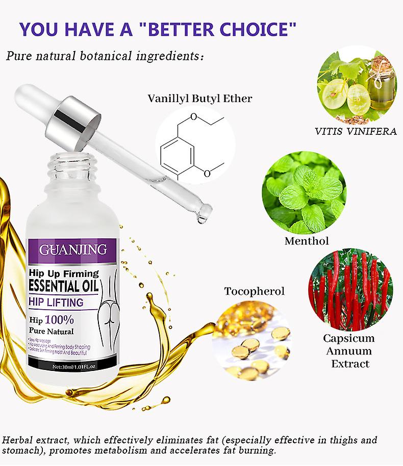4.Rich in natural plant essential oils. Plant active ingredients deeply nourish buttocks skin, repair strong cells, and make buttocks lines more compact.