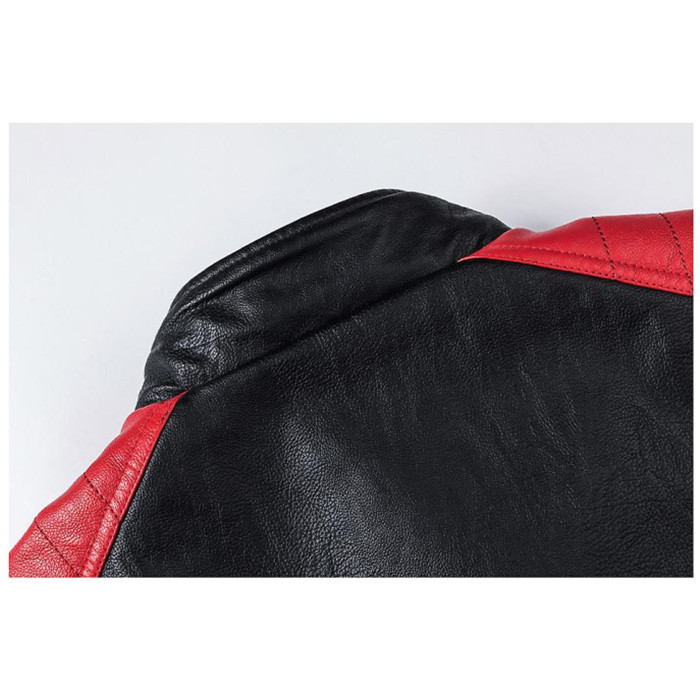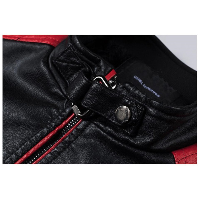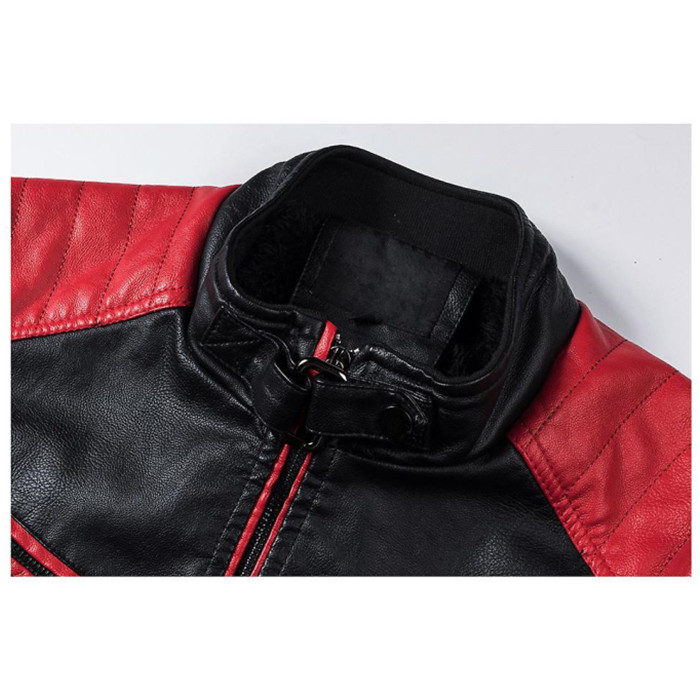Men Motorcycle Leather Jacket Stand Collar Vintage Zipper Biker Coat Racer Outerwear