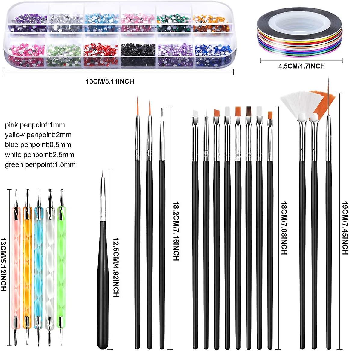 Nail Art Brushes Kit Nail Design Decorations Set Dotting Tools Multicolor Nail Rhinestone