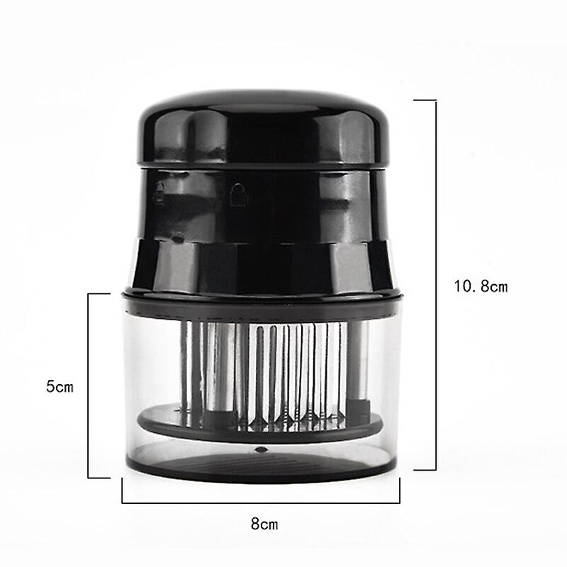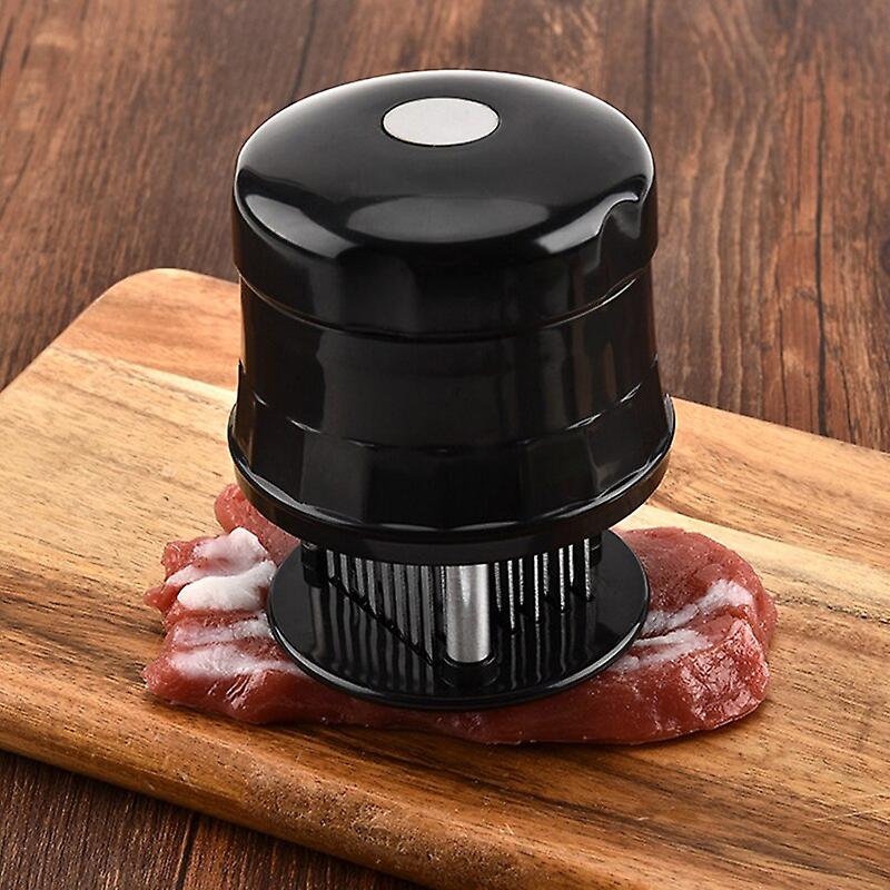 The meat tenderizer uses 56 ultra-sharp metal blade needles to pierce the meat and quickly cut through the muscle tissue and collagen to make the beef, poultry and pork more tender.